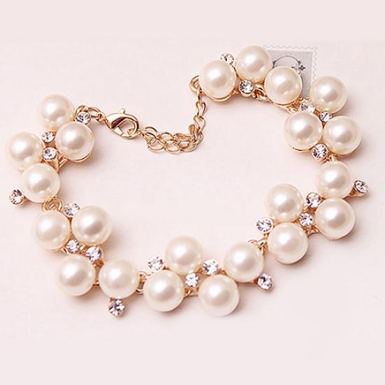 Women Faux Pearl Rhinestone Bracelet