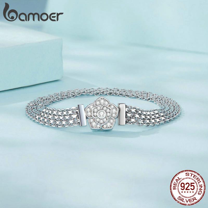 Womens 925 Sterling Silver Rose Basic Bracelet