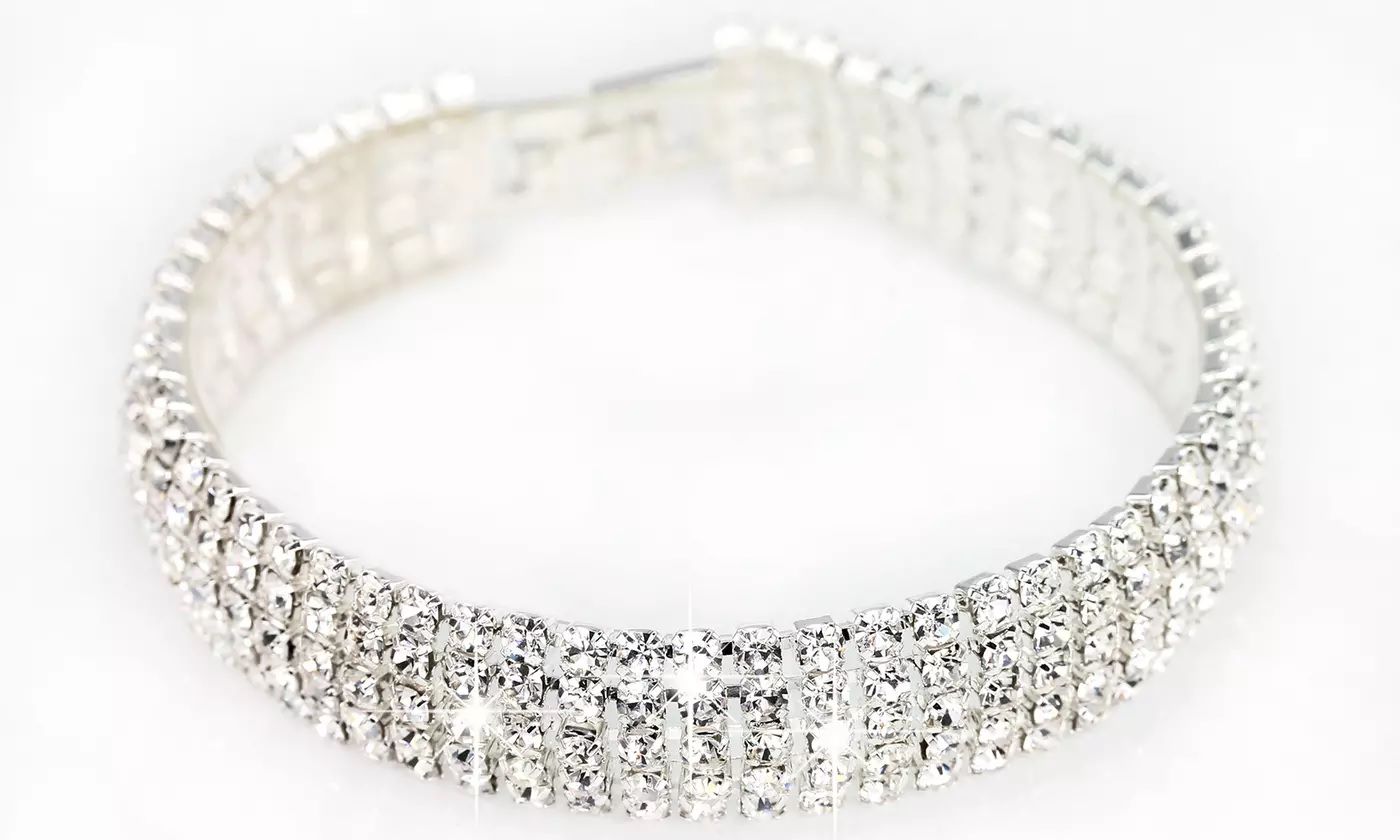 Five Row Pave Bracelet Encrusted With Crystals From Swarovski - Silver
