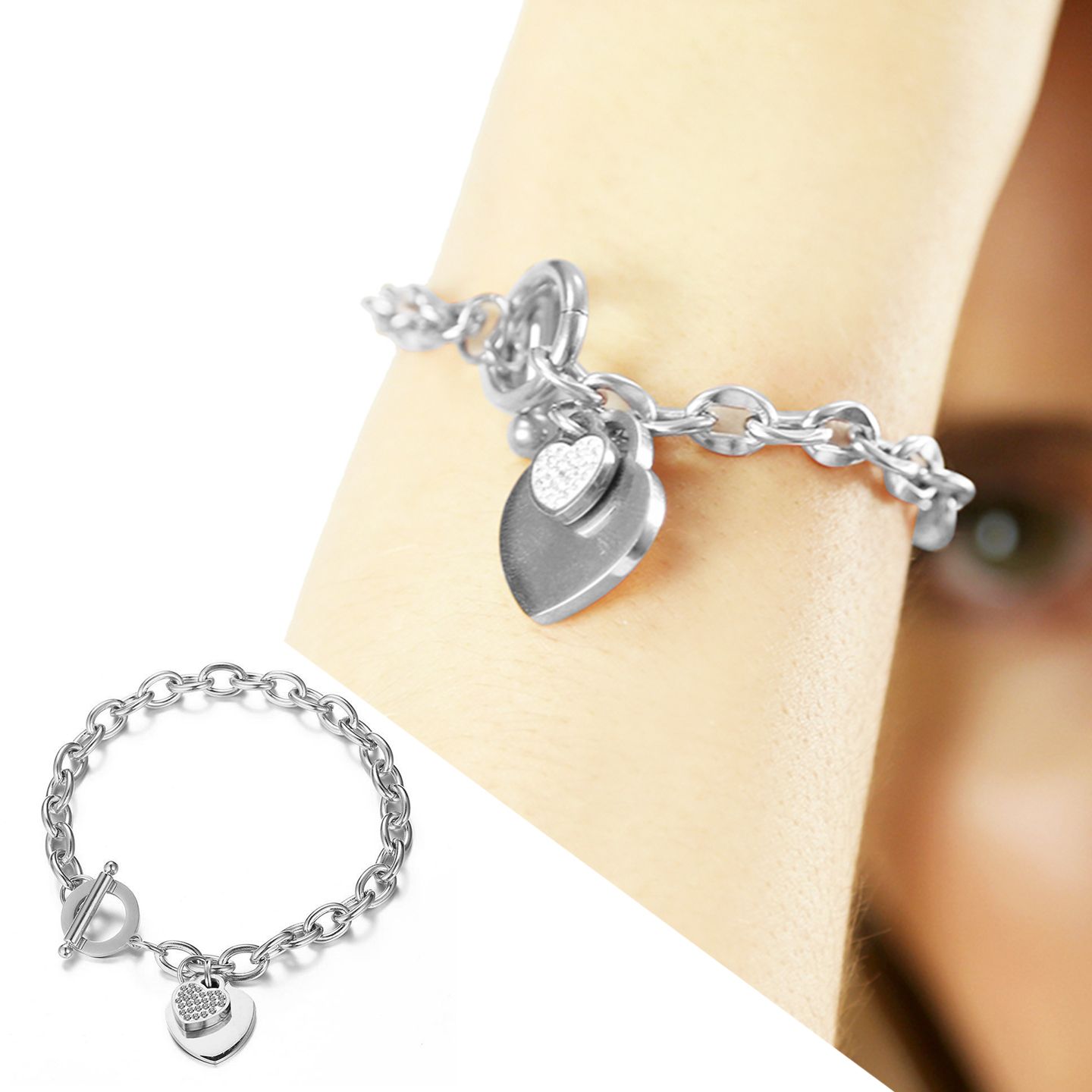 Heart Toggle Bracelet Encrusted With Crystals From Swarovski - Silver