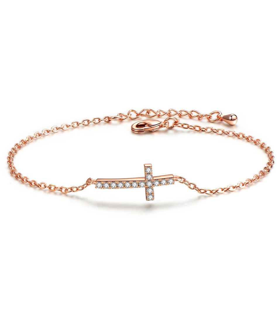 Eira Wen Pave Cross Charm Bracelet - Rose Gold