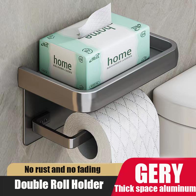 Aluminum Toilet Paper Holder With Shelf For Bathroom