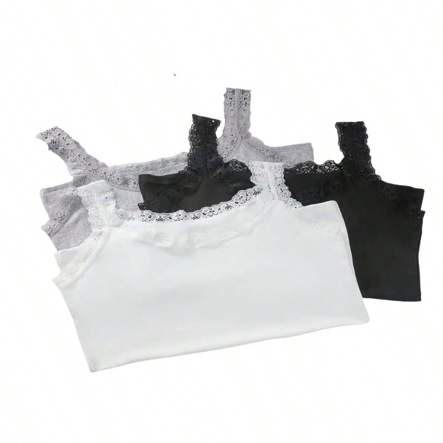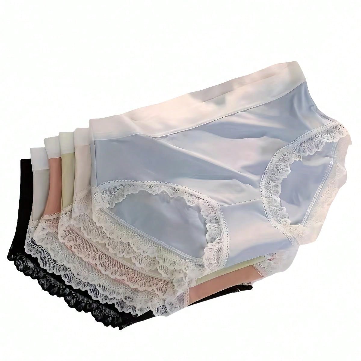 Set Of 6 Women's Briefs With Lace Trim Mid-rise