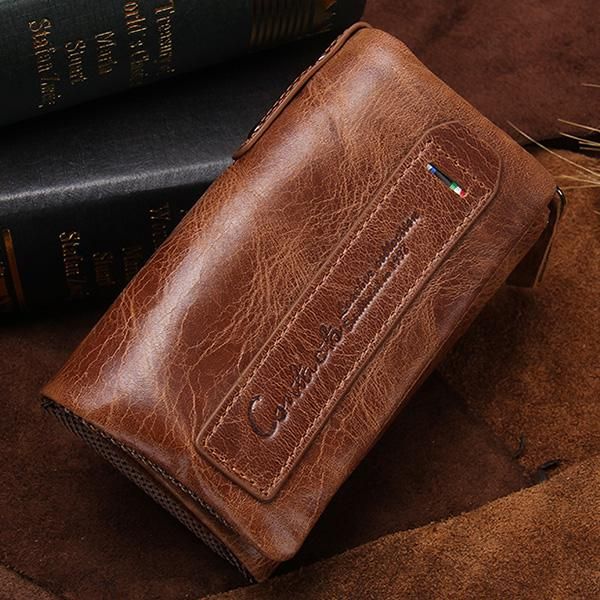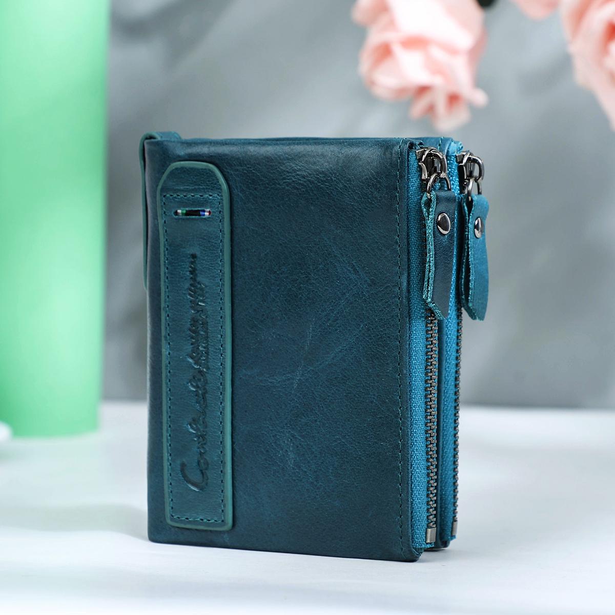 Contacts Fashion Leather Wallet - Double Zipper Design