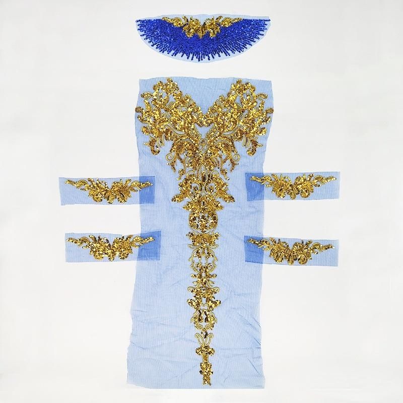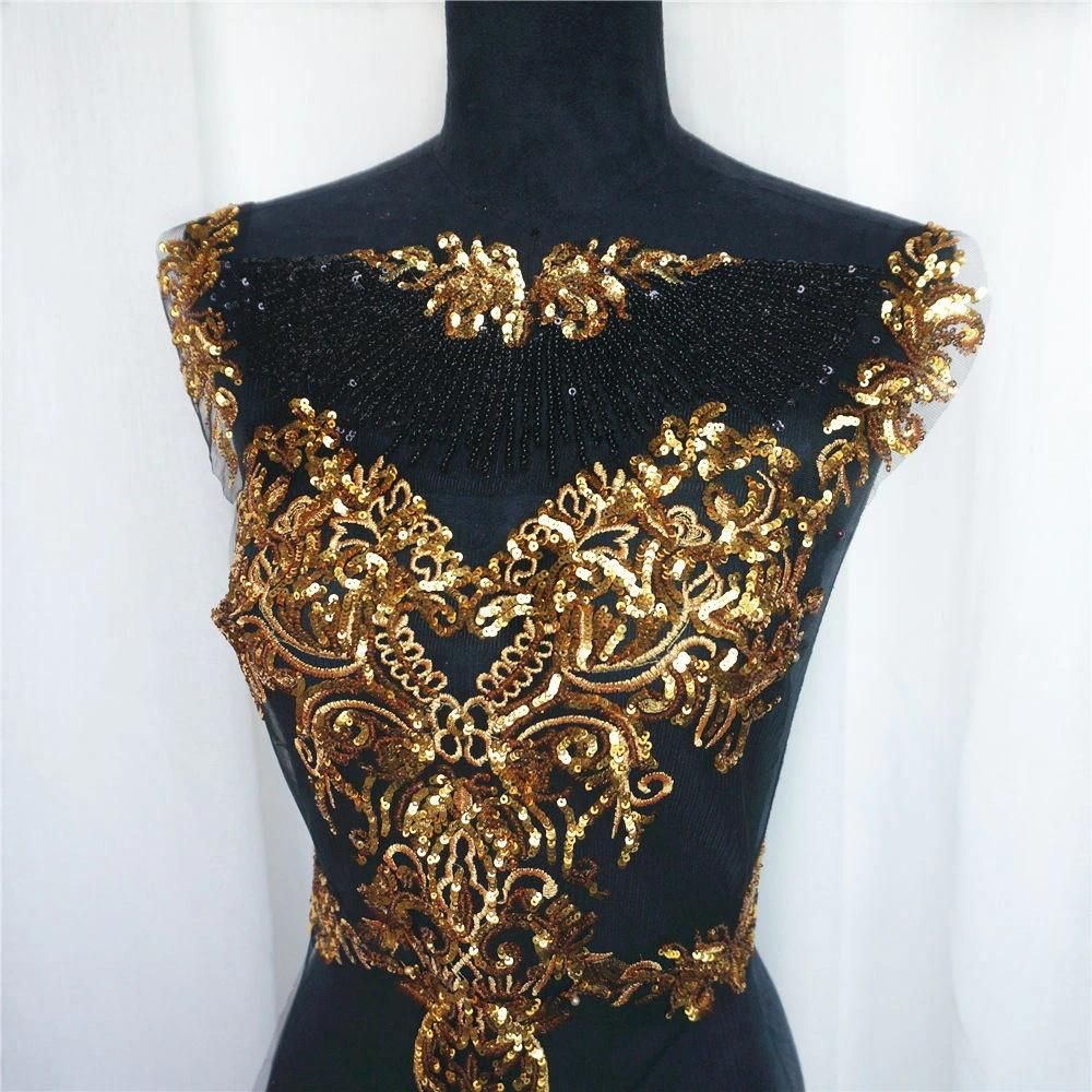 1 Set Tulle Gold Sequin Embroidery Fabric Lace