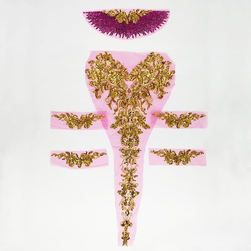 Usage: Sewing only.Size: As pictue shown.Material: Fabric;sequin;Mesh.Application: Wedding dresses; Bridal dress and so on.Package included: 1 set