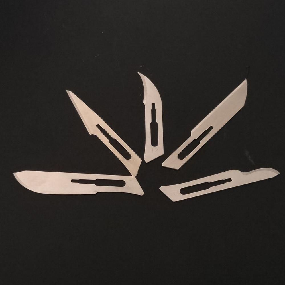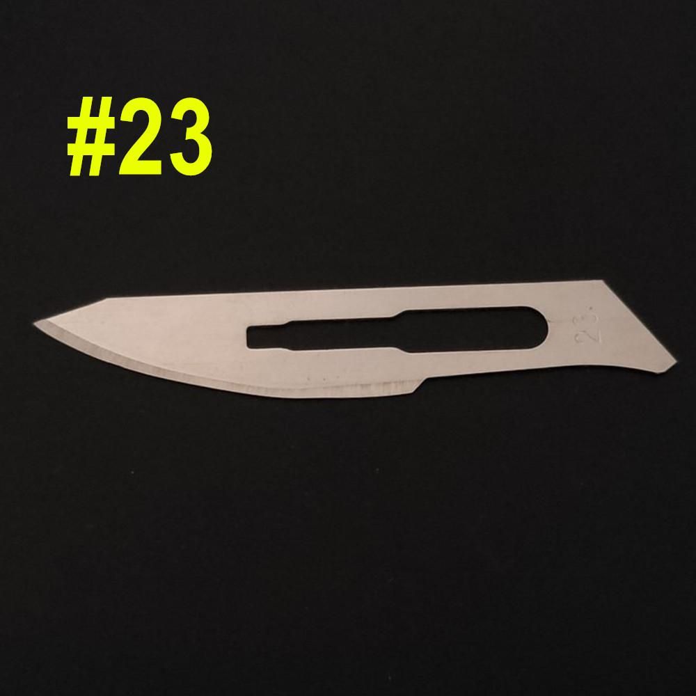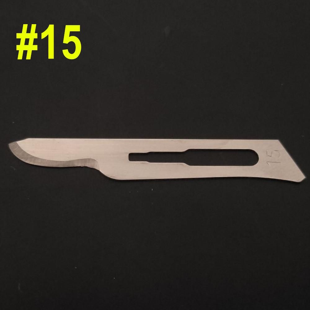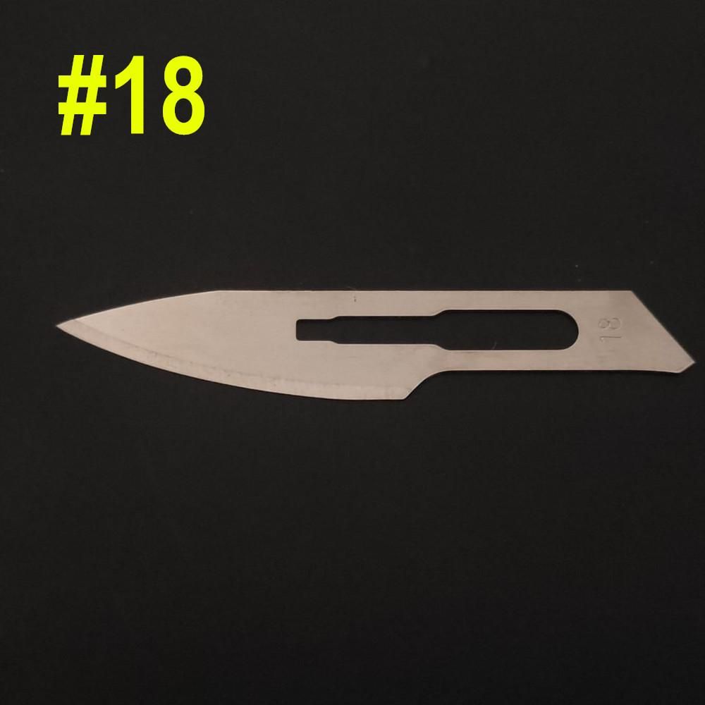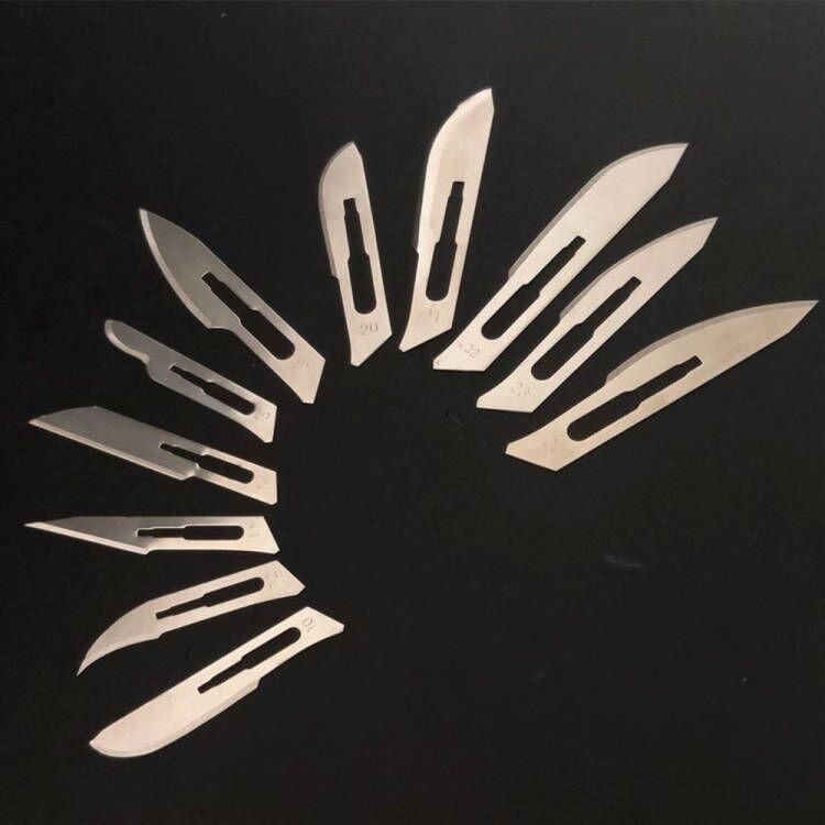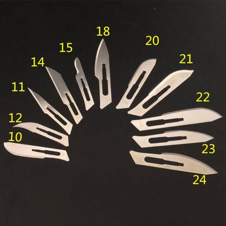 100 Pcs Scalpel Blades For Dental medical Stainless Steel Surgical BladeDisposable steel surgical bladesBlade No.18/No.20/No.21/No.22/No.23/No.24 apply to a handle of No.4.Blade No.10/No.11/No.12/No.14/N0.15 apply to a handle of No.3.High QualityYou will get 100 Pcs individual Package