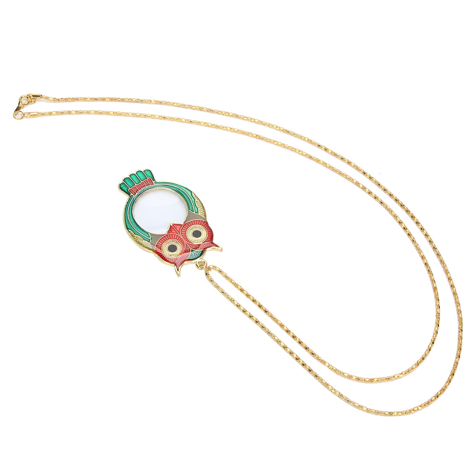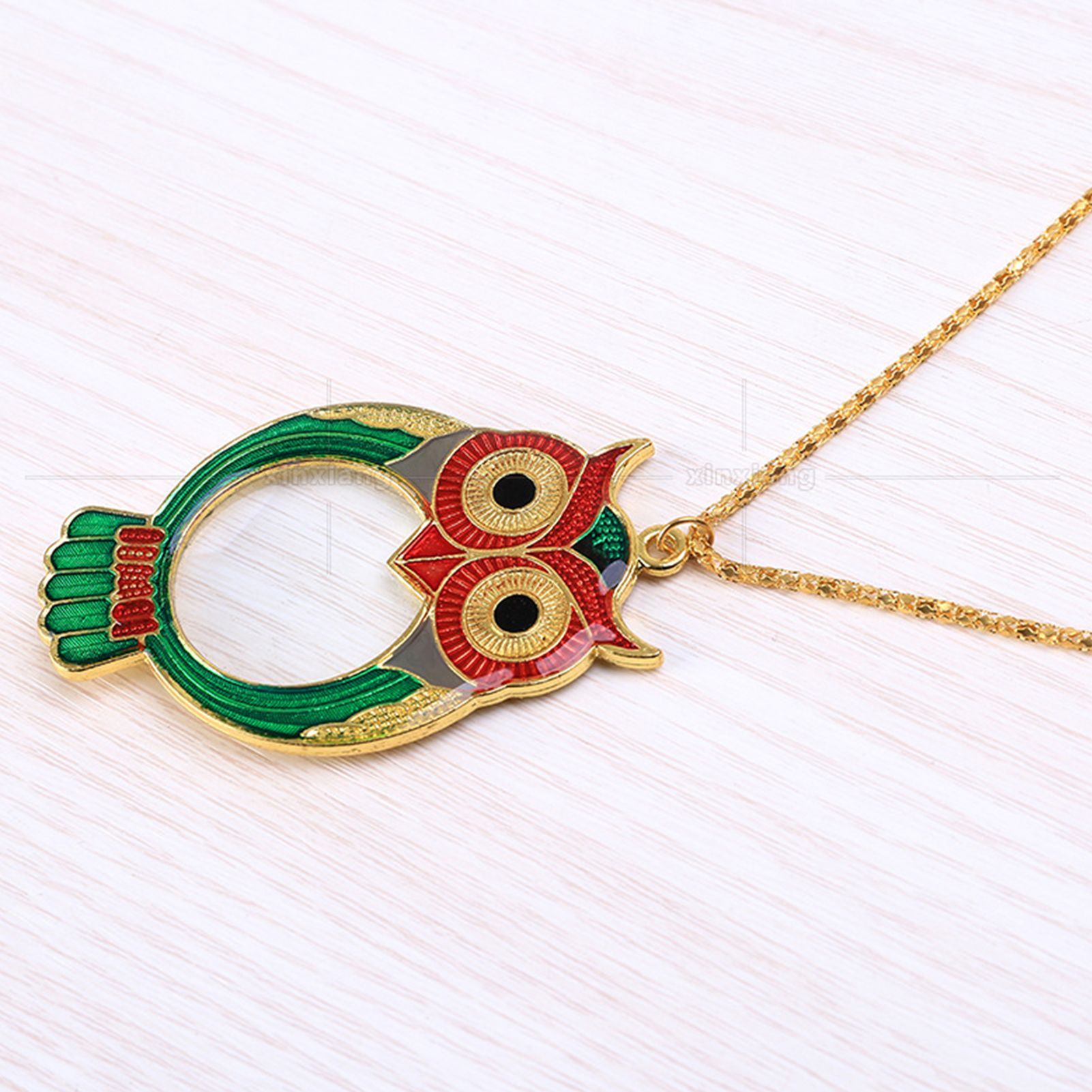 1Owl pattern on the chain magnifying glass, bright colors, overall looks delicate and beautiful. 2Suitable for reading receipts, newspapers, books, magazines, maps, science classes, jewelry, inspection documents, handicrafts, etc. 3This magnifying glass provides a very clear image and provides an exquisite gift for the elderly. 4It will also be a good gift for children to explore nature and arouse their curiosity and interest in learning. 5Easy to wear and practical, light weight and in small size, suitable for home, office and travel.