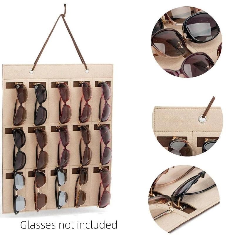 Lable:YesFeatures: Perfect Sunglasses Storage: 15 slots to keep your sunglasses and help you quickly see where sunglasses are placed. Hanging Place: Suitable for hanging on wall, closet bars, hangers and displayed in your home, space saving. Perfect Protection: this sunglasses storage can protect lenses and temples from scratches with no need for button, keep your sunglasses safely and cleanly. Quality Material: Made of fine quality felt material, which is durability, well made and not easily deformed. Great Gift: Perfect gift for personal and home decorative usage, the best gift choice for housewives, husband especially for men. It is wonderful organizer holder for your family, friend and sunglasses collectors.Specification: Material: FeltSize: Approx. 40x50cm/15.75x19.69inOptional Color: Grey, BeigeQuantity: 1 PcPackage Includes: 1 x Eyeglasses Hanging Bag (Glasses not included)Notes: 1. Please allow 1-2cm error due to manual measurement. please make sure you do not mind before you bid.2. Due to difference between different monitors, the picture may not reflect the actual color of the item.