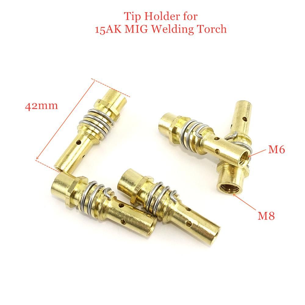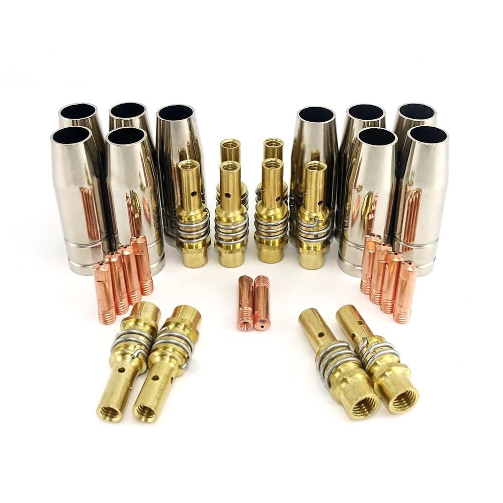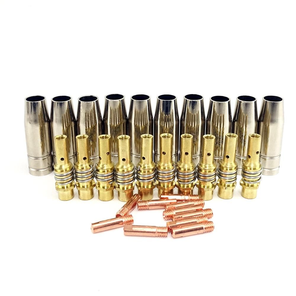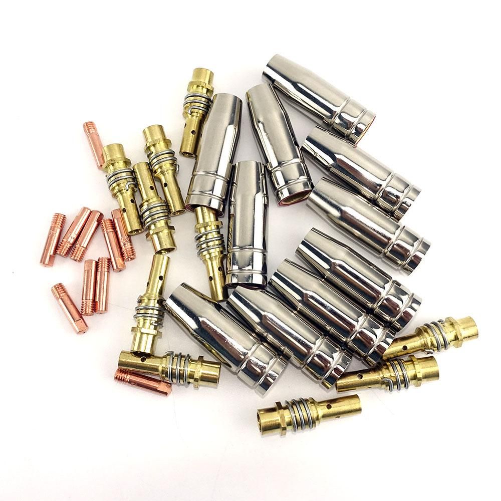 High quality consumables for Euro Style MIG/MAG Welding Torch.It is compatible with all kind of BINZEL Style MB 15AK MIG Welding Torches. And some special 24KD torches.Package:Contact Tips: 10pcs. 2 sizes available for option: A. 0.8mm (0.03), B. 1.0mm (0.04).Gas Nozzle: 10pcs.Gas Nozzle Holder/Contact Tip Holder with Spring: 10pcs.Additional Offer:We are offering full range professional Welding & Cutting products, please visit our shop for more option.