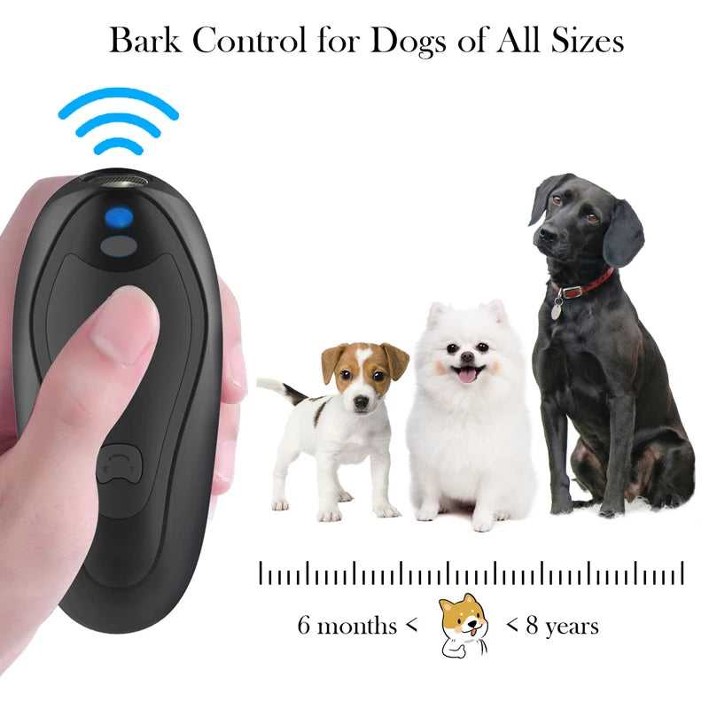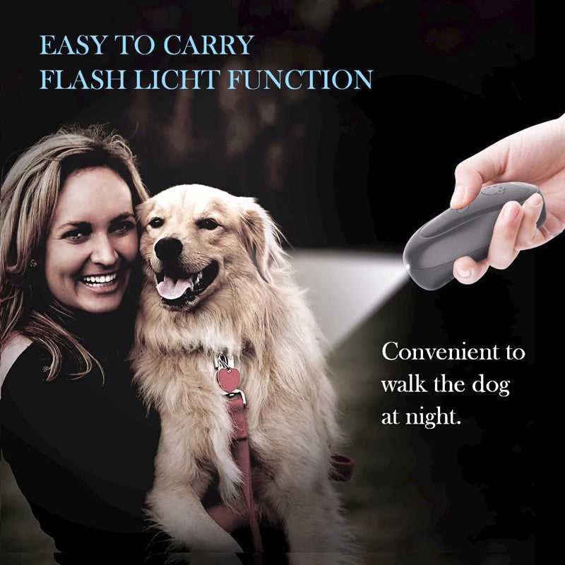 【Anti-bark device】: The ultrasonic bark Deterrent adopts high-frequency sound, which can reduce the excessive barking of dogs in the hearing range. When you hear the dog barking, press the ultrasonic control button. The anti-barking device emits ultrasonic waves to attract the dog's attention and prevent it from barking excessively!