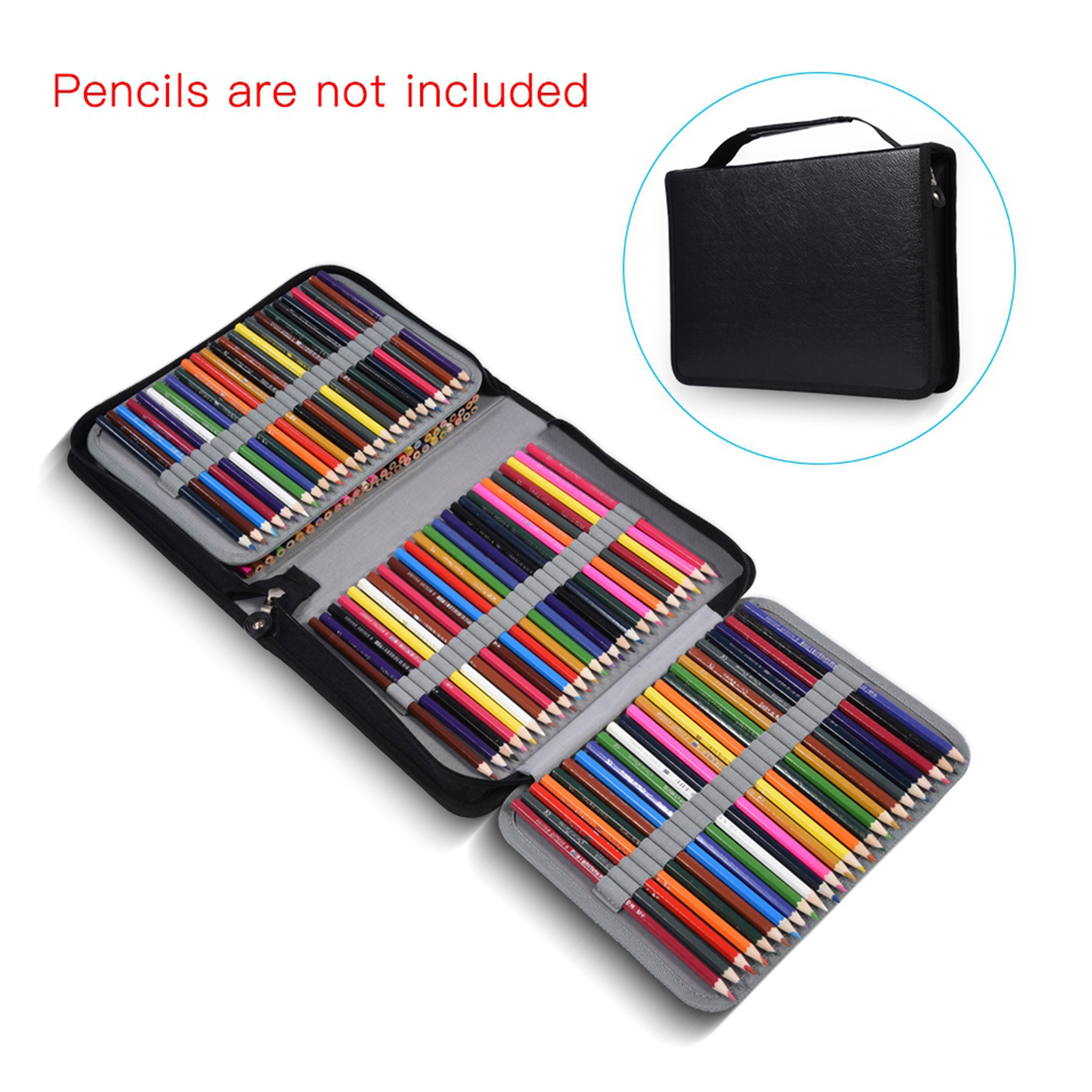 1This pencil case organizer is made from high quality PU leather and fabric, so as to make the case much more durable and dirty resistance 2It is designed with stitching zipper for easy access and security of your cpencils 3There are elastic on column that is divided into many slots (150 slots in total) to hold, organize and protect your pencils 4It is easy to carry with a long comfortable handle to hold and reduces fatigue in a long trip 5This storage pencil bag is an useful container to put in with color pencils, drawing pencils and pens