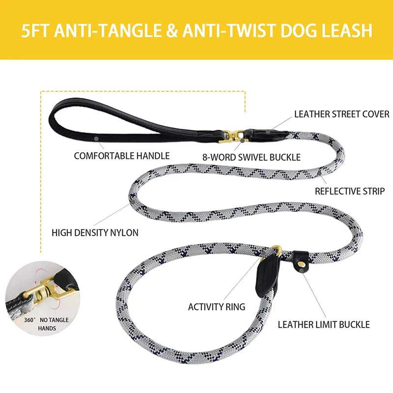 【Pet Dog Leash】Using a dog slip leash will make your pet safer and easier to handle than traditional dog collars and leash harnesses. Dog leash with a leather handle is the perfect choice for dog daily necessities. Slip rope dog leashes are also great for your walks, runs or dog training.