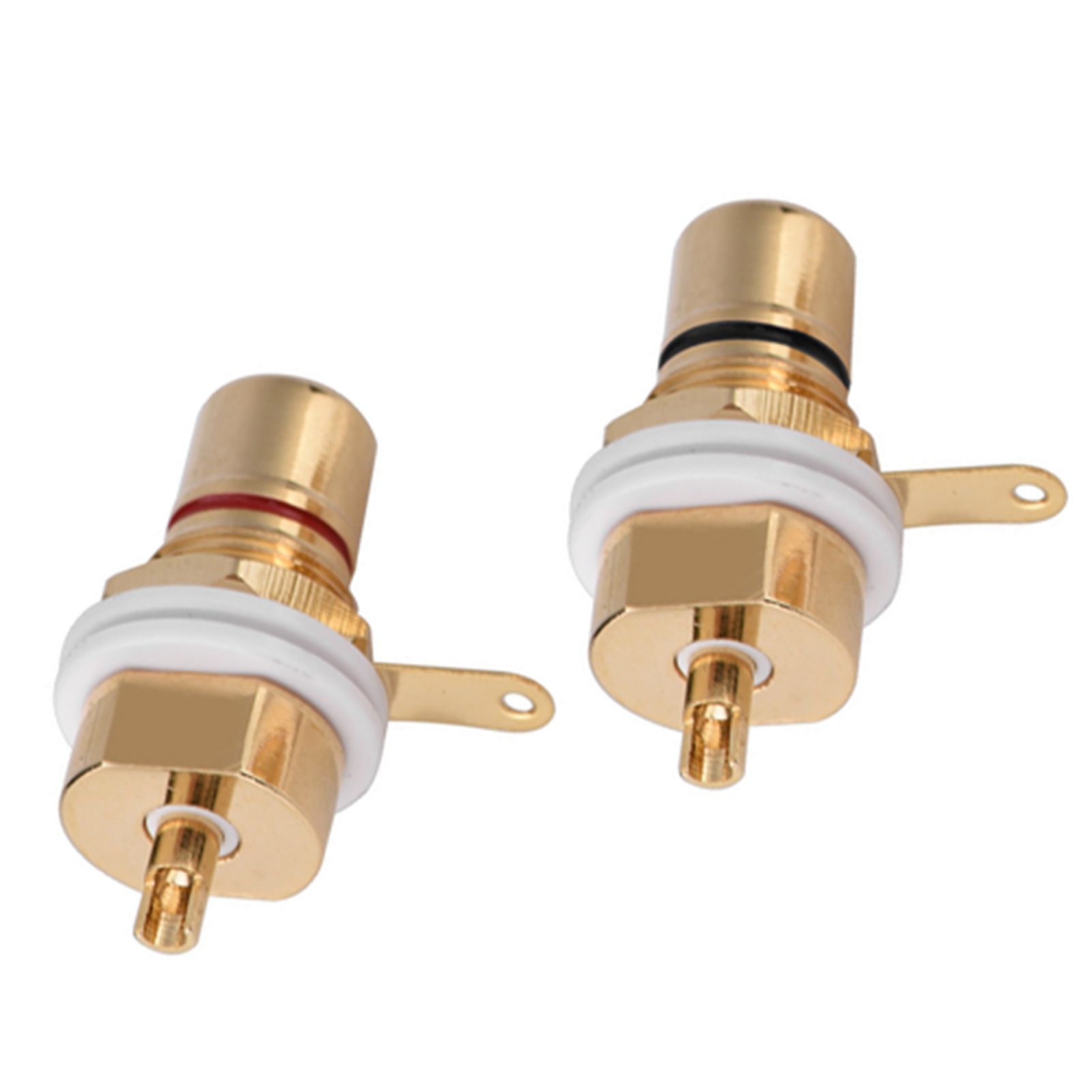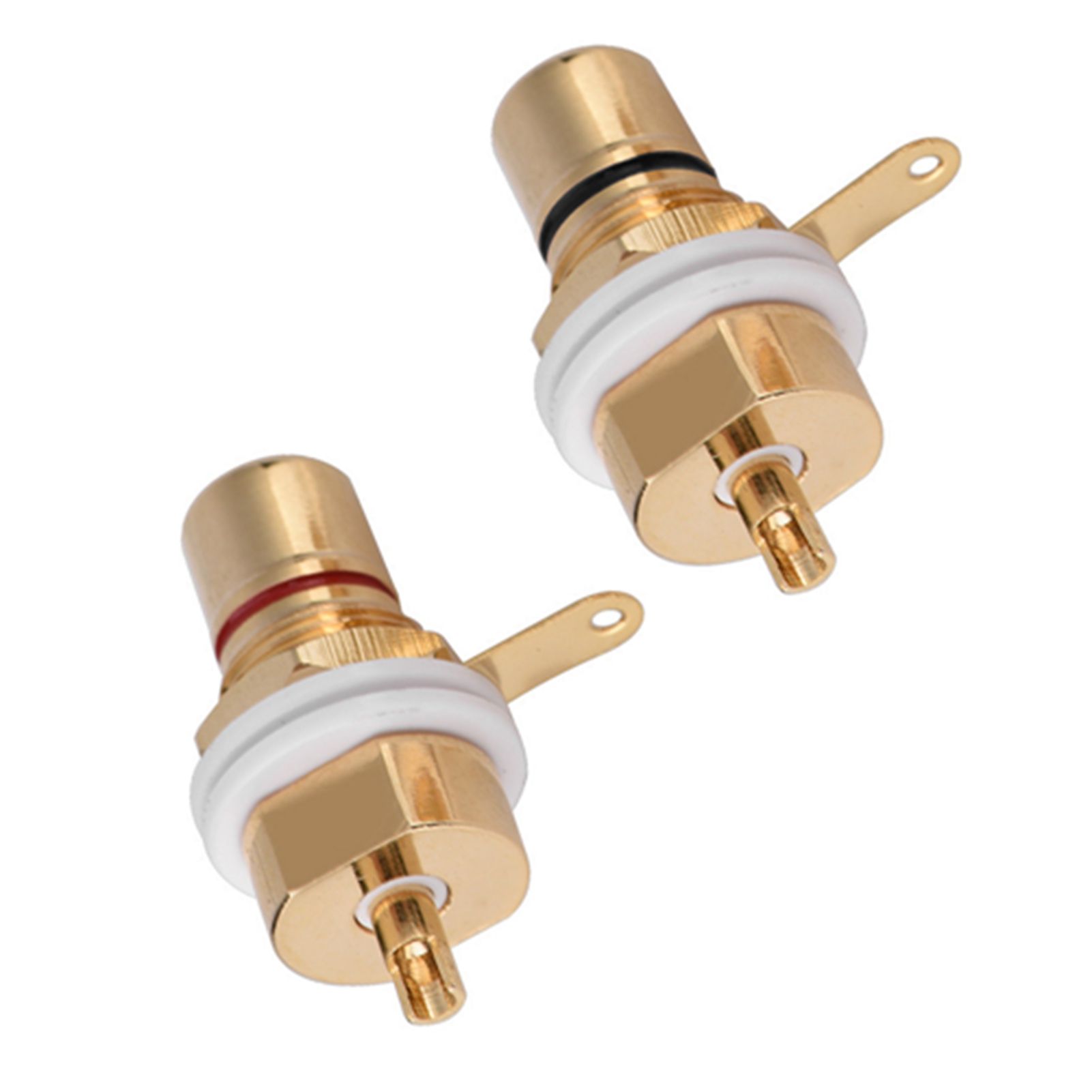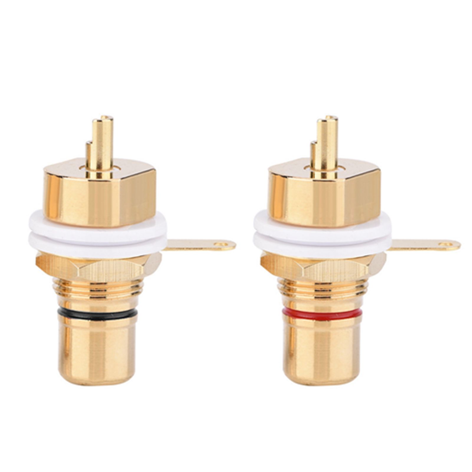 1Made of pure copper, gold plated for improving signal transfer and durability 2RCA jack female chassis connector for amplifiers, solder type 3Good contact performance, convenient and practical solder connection 4Can fix 2mm thick panel, open 12mm diameter fixing hole 5Good elasticity, resistance to fatigue and deformation, ensure that the insertion is not loose, deformation, and good conductive contact