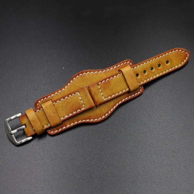 Origin: CN(Origin)Band Length: 19cmItem Type: WatchbandsBand Material Type: LeatherCondition: New without tagsModel Number: KZDT02Clasp Type: Stainless steel Bucklewidth: 22mm 24mmlong part length: 11.5cmshort part lenght: 7.5cmCOLOR: blakc yellow red greenstyle 1: watch band handmade mens leather bracelet