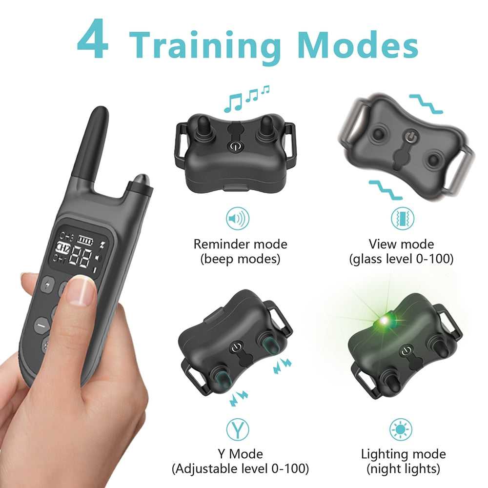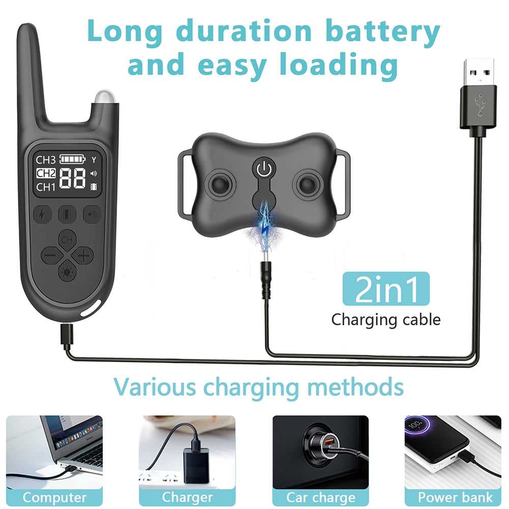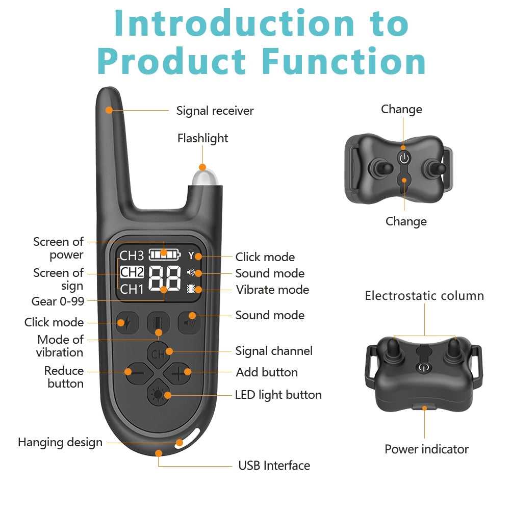 3. Electrostatic mode: It can adjust the electrostatic intensity in multiple gears (level 99) to give serious warning to the dog, and will not harm the twigs. The column cannot touch the skin)