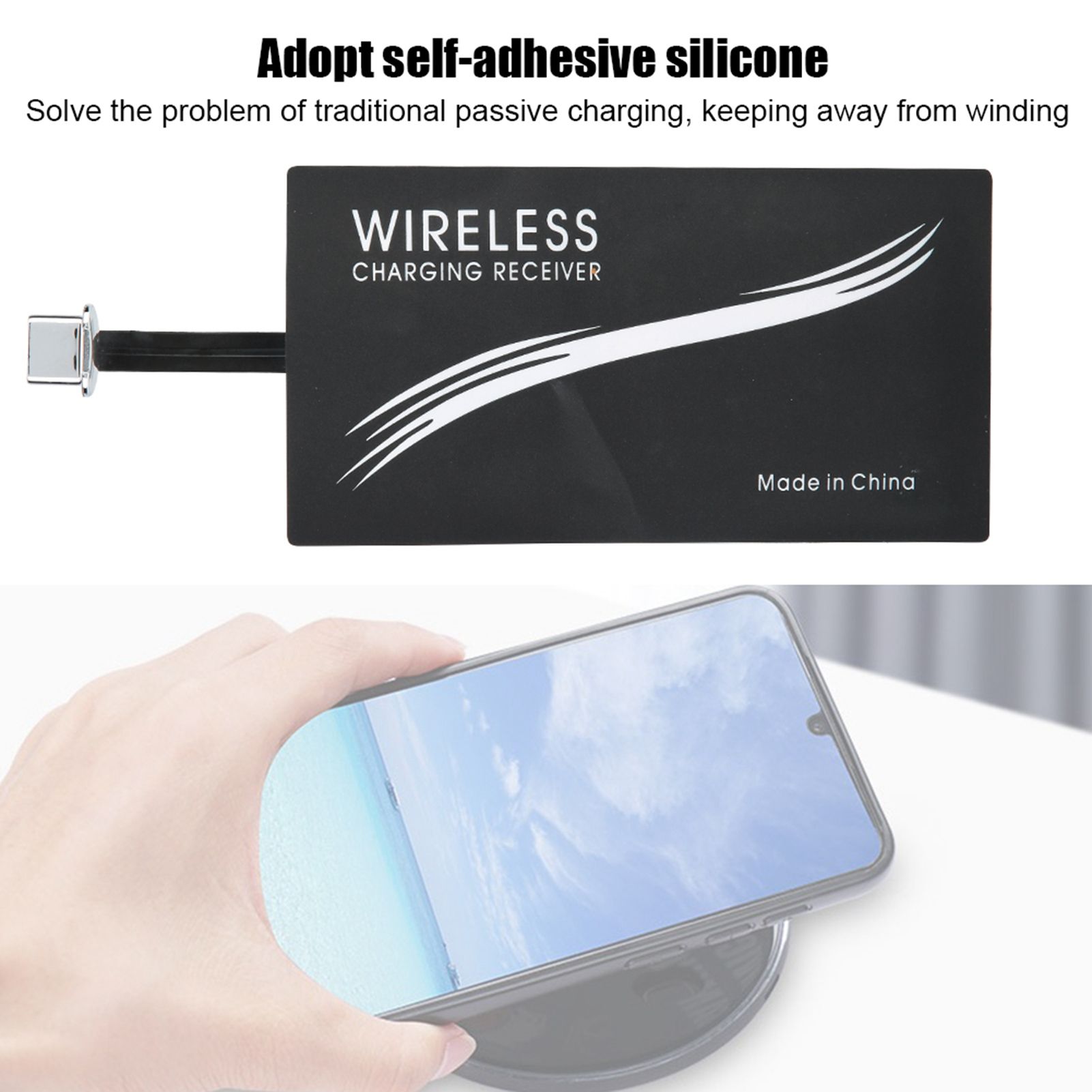 1Wireless charging receiver for mobile phone, stable performance, easy to use. 2Adopt self-adhesive silicone, which solves the problem of traditional passive charging, keeping away from winding. 3Lightweight and small, which can be put in your pocket for easy carrying. 4Small size design, occupying little space, bringing great using experience. 5Reliable to use, long service life, not easy to damage, and you can use for a long time.