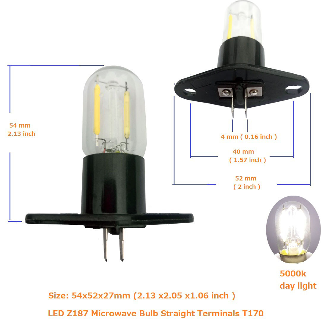 Application:Led Z187 Microwave Bulb T170 replacement for Ge for Lg for Sharp for Midea for Whirlpool for Panasonic for Bauknecht 20w Genuine Wb36x10063 Wb36x10131 3513601 And for Daewoo for Samsung for Wolf for Bosch for Viking Miele Neff Fagor Spoutnik Dunelm Mill for Sainsbury's Next Bertazzoni for Siemens Original Microwave Bulb And Other Microwave Oven,Range Hood And Other Home Application.