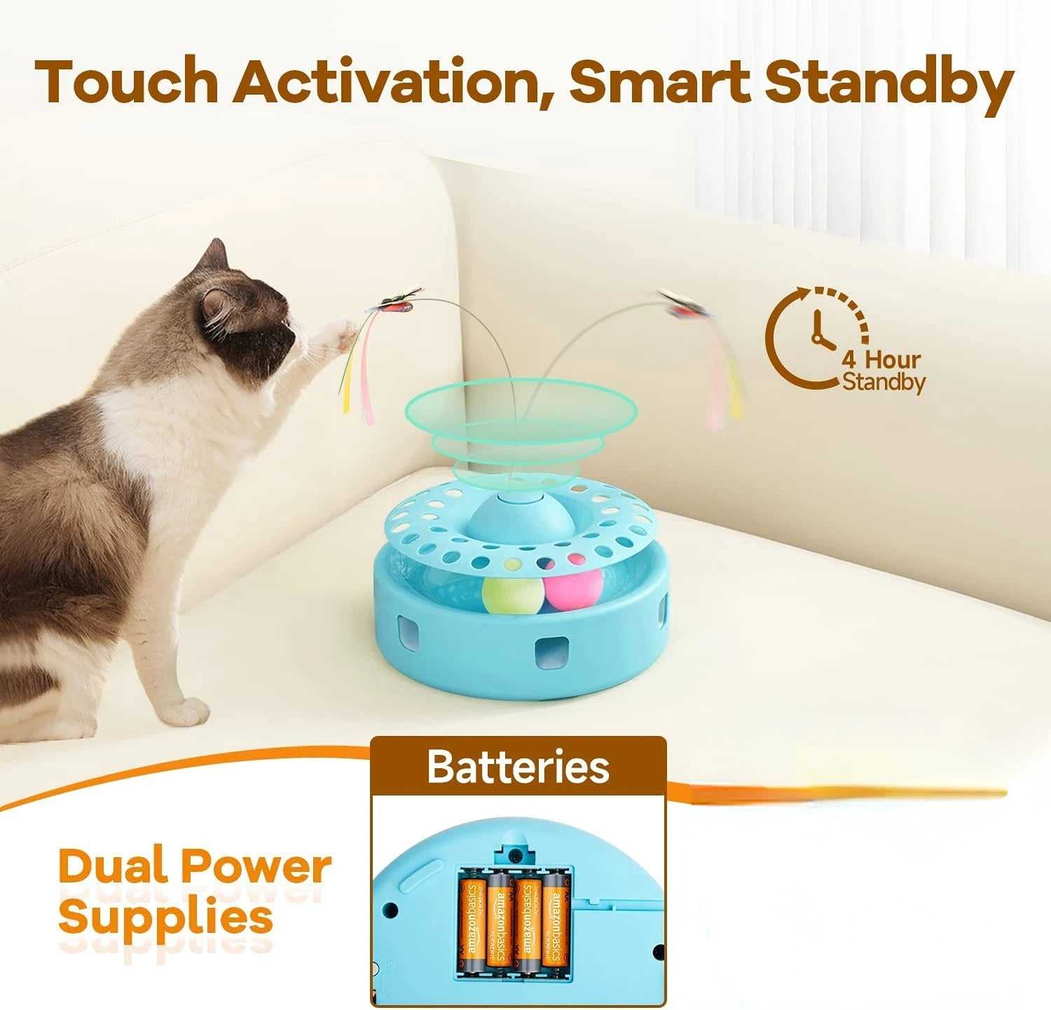 [Dual Power Supplies] - Smart Auto On & Off: To help conserve battery life, the toy will automatically stop in 5 minutes when cats don't touch it, and will work again when cats are ready to play. It is powered by 4 x AA batteries (Not Included).