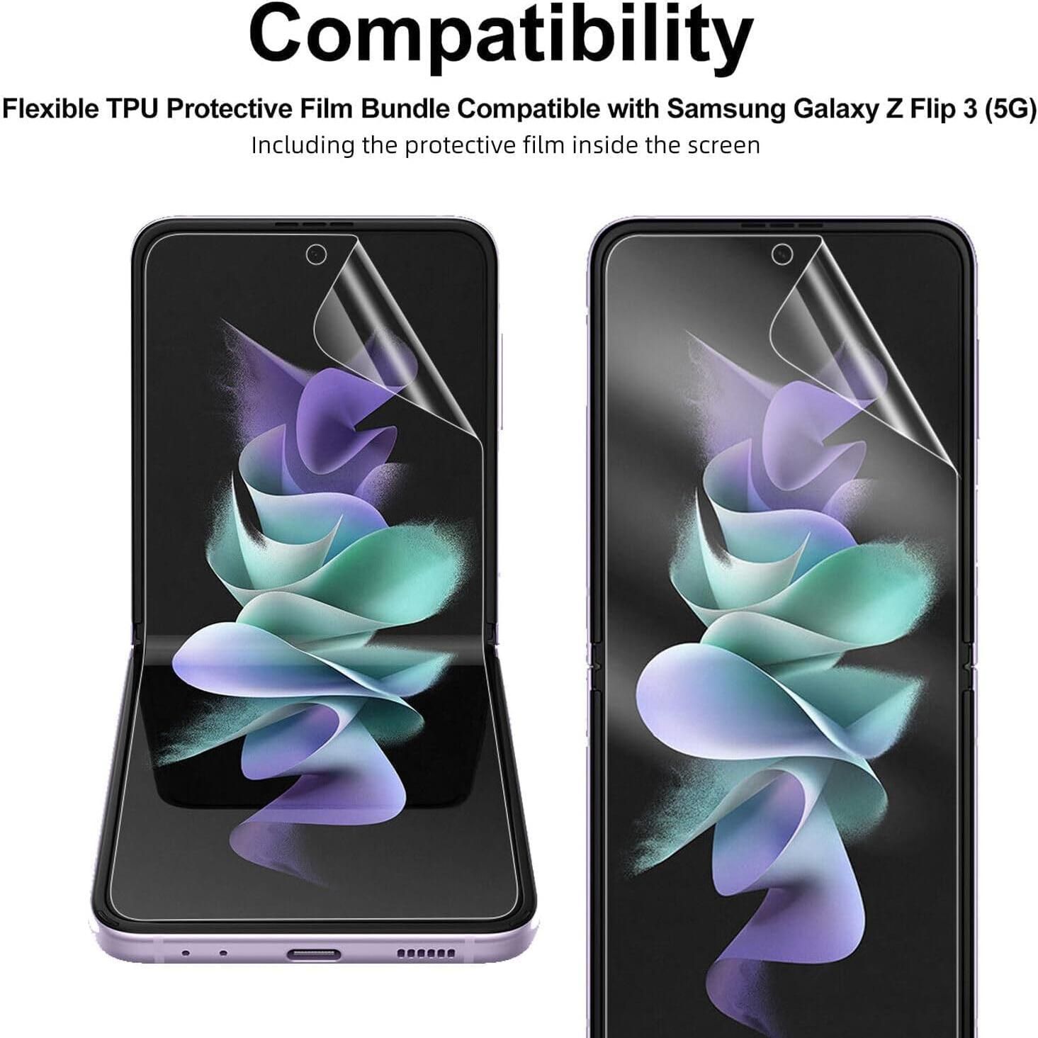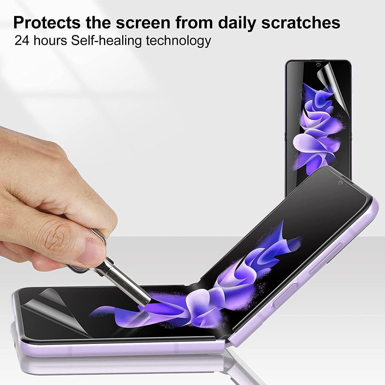 3 Pcs Hydrogel Film Screen Protector for Samsung Galaxy Z FLip 3 4 5 6 Flip3 Flip4 Flip5 Flip6 Soft TPU Film (NOT Tempered Glass) Fingerprint Unlock