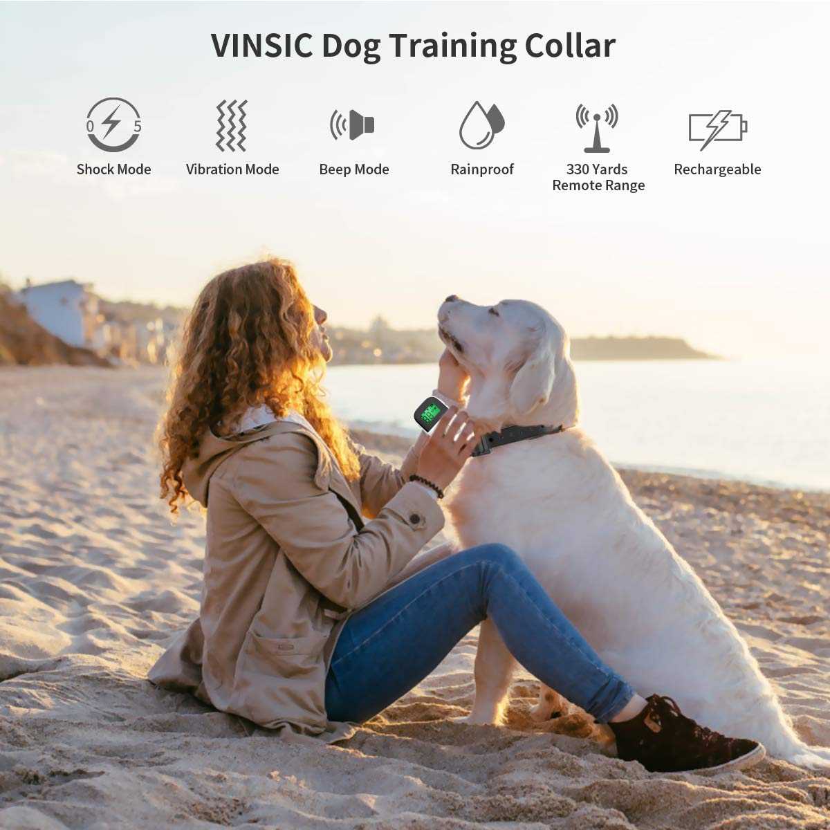 The mini dog shock collar with remote consists of a receiver, a transmitter and a collar. The device is rechargeable and waterproof, then the battery has a long-lasting life, designed with built-in lithium battery. It's safe and adjustable, so you could cut out the collar in accordance with the size of you dog.