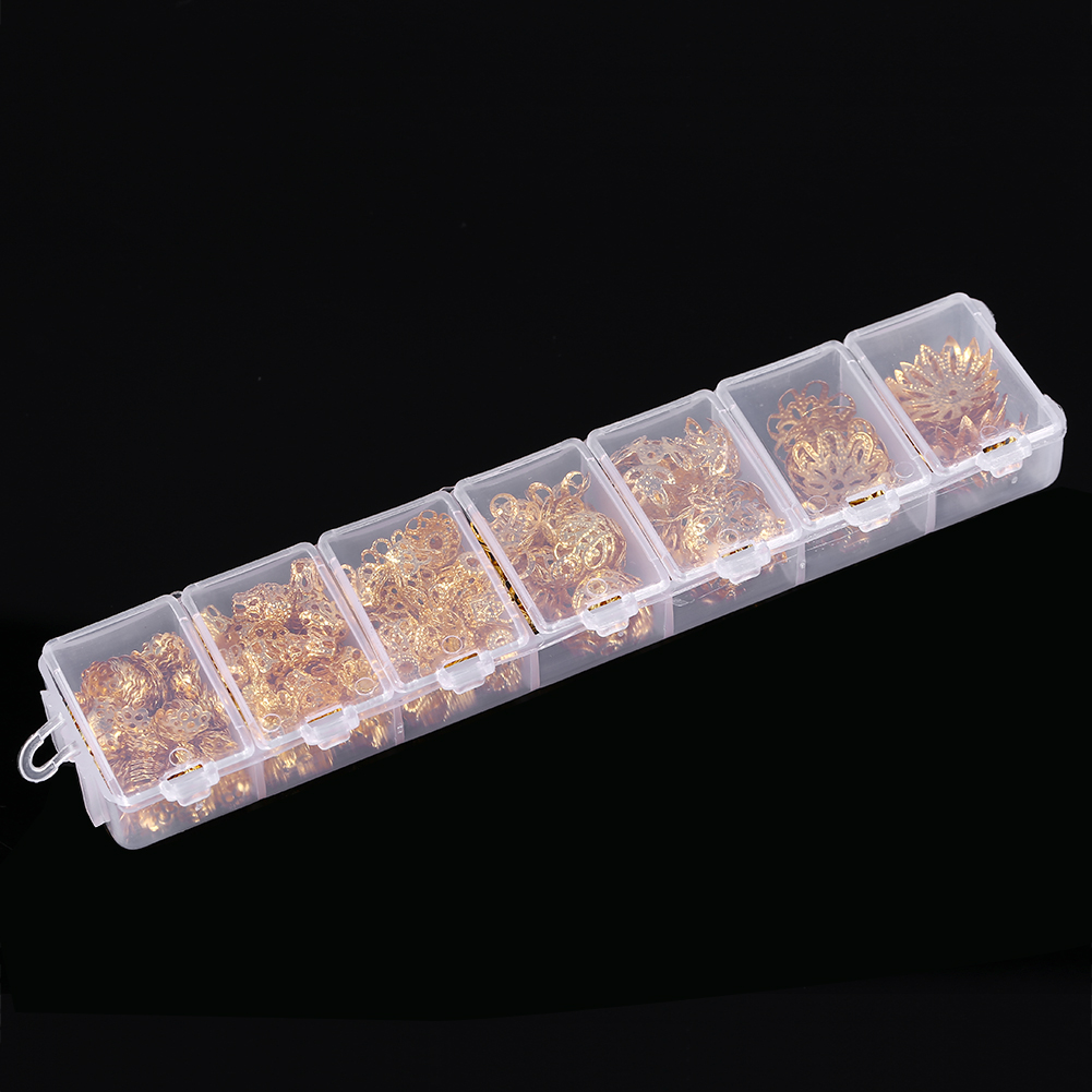 300pcs 7 Sized Flower Shaped Spacer Bead Cap Jewelry Making Findings Metal Accessories (gold)