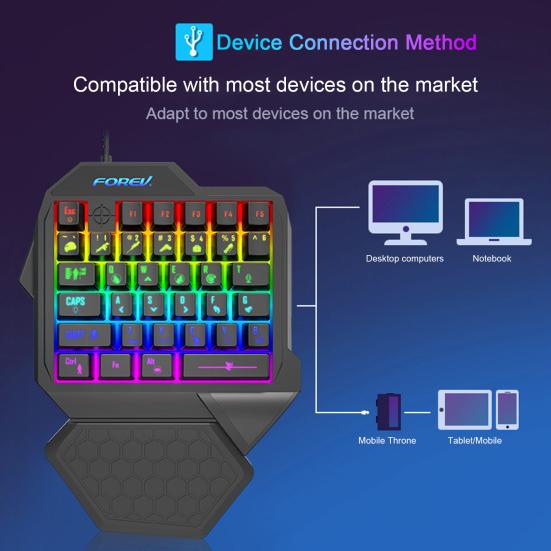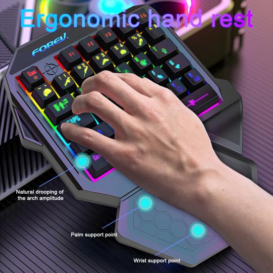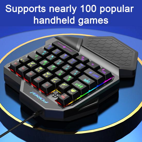 Ergonomic design with curved palm rest for comfortable and pressure-relieving gaming experience.Thin film silicone shaft for smooth and comfortable tapping feel.Wired connection compatible with most devices, ensuring easy compatibility.Cool backlight design for enhanced gaming fun and visual appeal.Built-in game chip for faster response speed and smoother gameplay, perfect for game enthusiasts.Introducing the mini gaming keyboard, a compact and ergonomic keyboard designed for gamers. With its traditional key positions and 35-key layout, this keyboard offers a seamless transition for gamers without the need for re-adaptation. The ergonomic support provides multi-point support and features a curved palm rest that conforms to the natural wrist posture, ensuring comfort and relieving wrist pressure during long gaming.The mini gaming keyboard features a thin film silicone shaft that delivers a comfortable and smooth tapping feel, enhancing your gaming experience. It is compatible with most devices on the market through its wired connection, making it versatile and convenient to use.But that's not all! This keyboard also boasts a cool backlight design that adds a touch of style to your gaming setup. The cool lighting effects create an immersive atmosphere, bringing more fun to your gaming.Equipped with a built-in game chip, the mini gaming keyboard offers a lightning-fast response speed that is 3ms faster than standard keyboards. This ensures smoother gameplay, allowing game enthusiasts to fully immerse themselves in their favorite games. Additionally, all 35 keys are free from ghosting, making this keyboard suitable for almost all computer games.Upgrade your gaming experience with the mini gaming keyboard. Item Name: Mini Gaming KeyboardMaterial: ABSProduct Name: One-handed Gaming KeyboardProduct Interface: USB2.0Working Voltage: VDD 3.3V-5.5VNumber of Keys: 35 Keys Working Current: 100mAButton Life: 20 Million Times Product Net Weight: 290gProduct Line Length: 1.5mFeatures: Ergonomic Design, with Wrist Support, Dazzling LightSize Details:L: 25cm, W: 19.5cm, H: 4cm(Approx.)Notes:Due to the light and screen setting difference, the item's color may be slightly different from the pictures.Please allow slight dimension difference due to different manual measurement.Package Includes:1 x Mini Gaming Keyboard