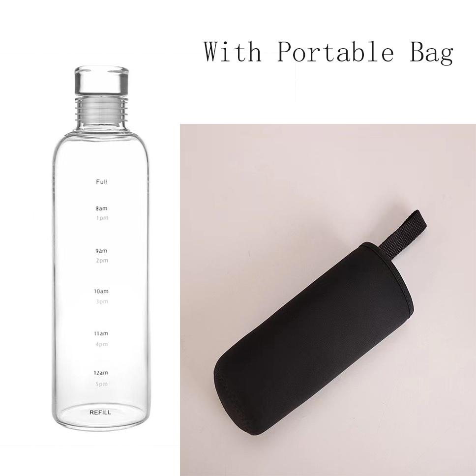500/700ml High-grade Glasss Water Bottle With Time