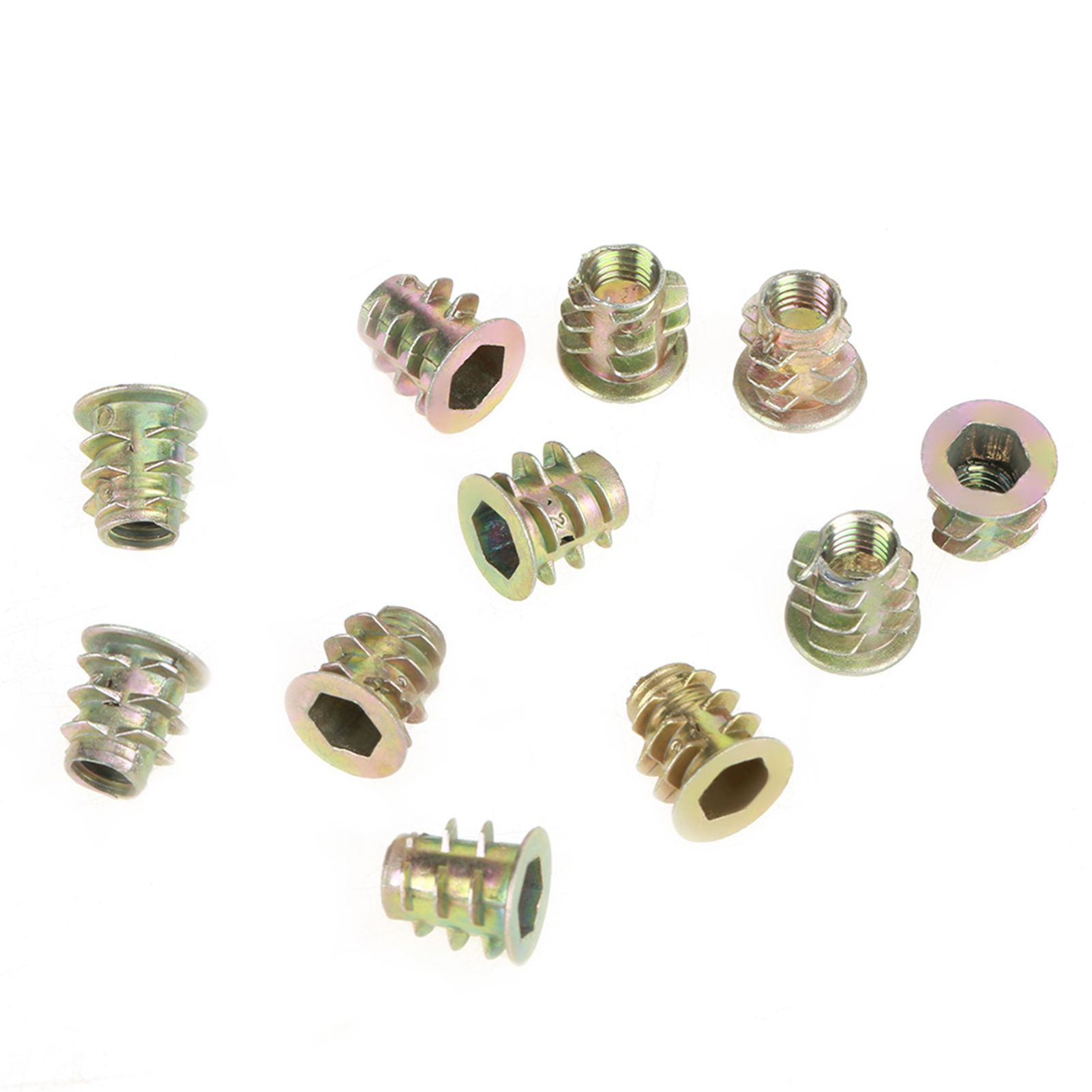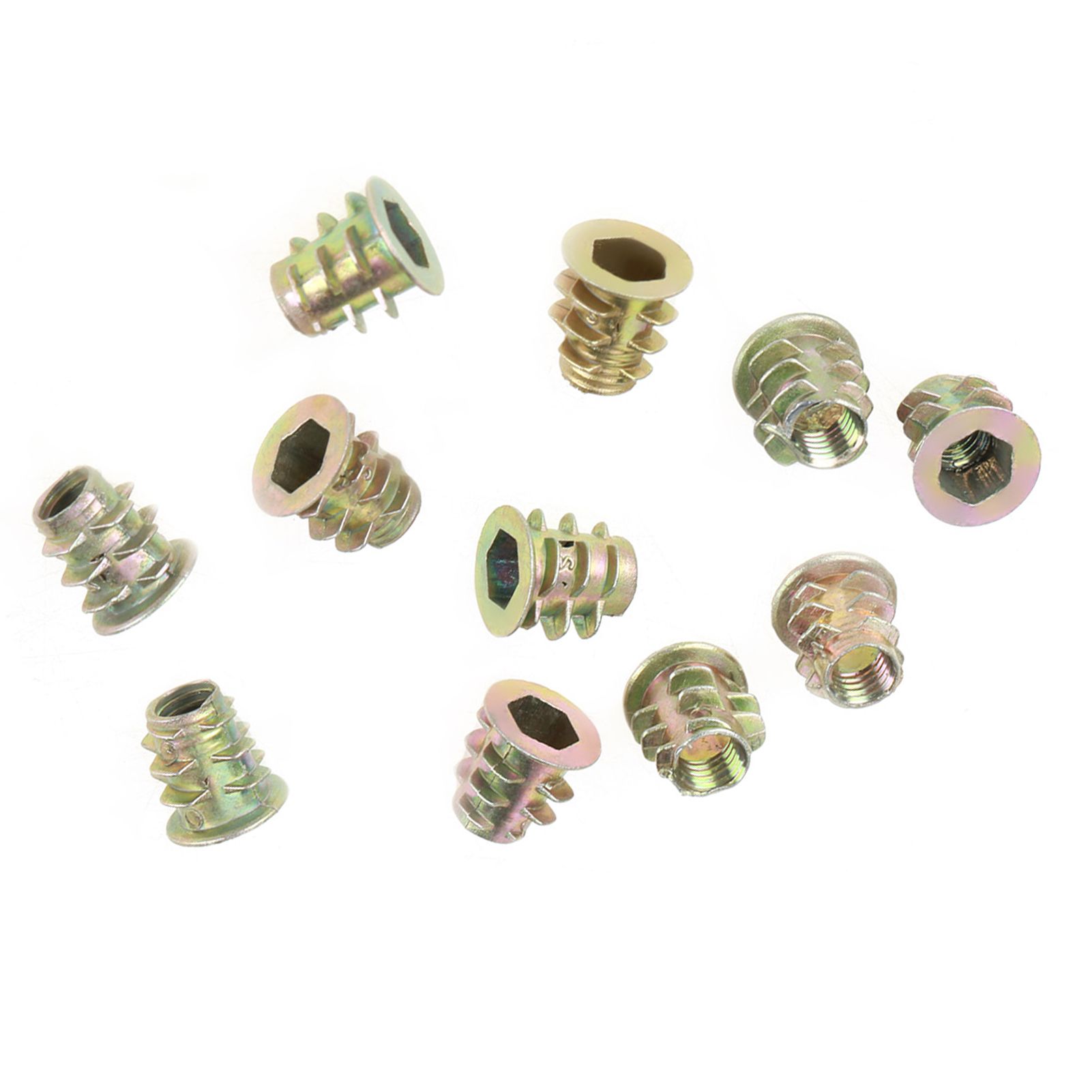 1Made of high quality zinc alloy, durable and rustproof. 2Unique external thread makes it insert hole easily and save effort. 3External thread ensures strong resistance against pull out. 4Flanged head prevents splitting of the surfaces and driving the insert too deeply. 5Provide a strong permanent thread for wood and wood based sheet materials.