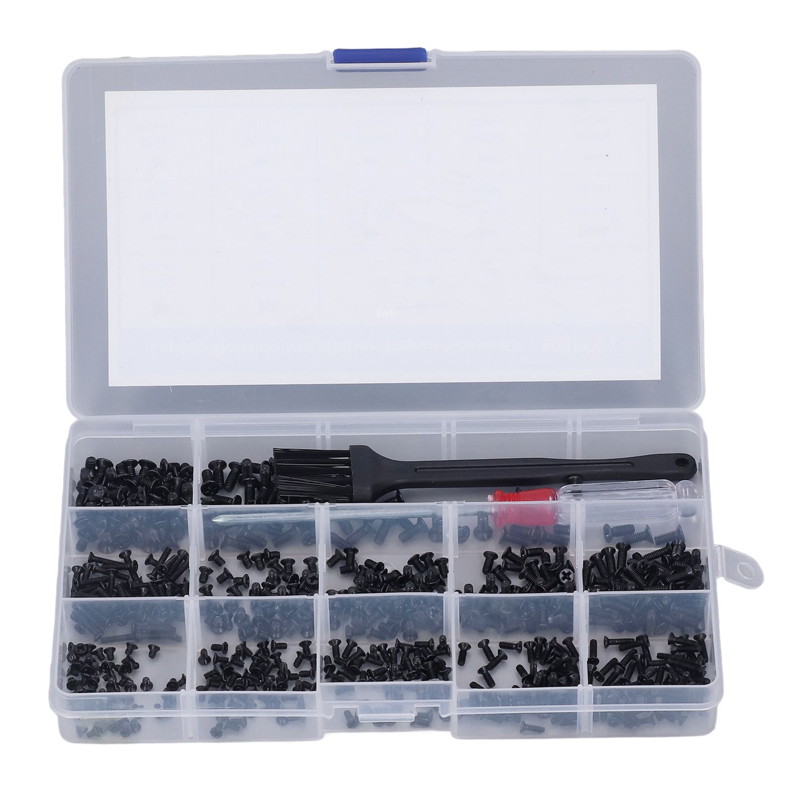 1600Pcs in All: Comes with 12 kinds of screws, and each type has 50pcs. The large quantity will meet your varied work needs. 2Practical Use: Suits perfectly for the maintenance of PC cases, power supplies, motherboards, hard drives and laptops, etc. 3Good Material: Using high quality carbon steel material with fine thread, ensuring no deformation or slipping in long use. 4Has 2pcs Tool: A screwdriver and a brush are also included in the set, largely simplifying operation and improving efficiency. 5Easy Carrying: Designed to have a light weight and a compact size as well, both the storage and carrying are very simple.