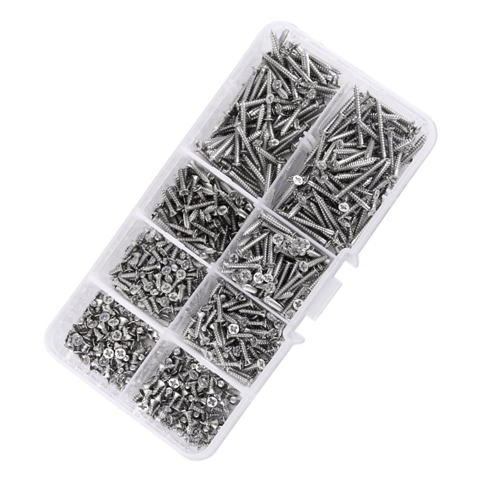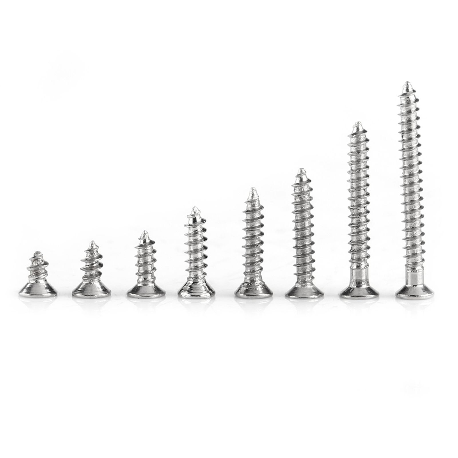 1These flat head screws are great to use in confined areas where the head needs to be flush or below the surface 2Screws have sharp threads that cut into a material such as soft metal sheet, plastic or wood 3There are eight common lengths from 4mm to 20mm in this set for general purpose use 4Well packed and assorted in a resealable transparent box for convenient storage and carry 5Used widely in the home and office appliance, wood furniture, repair and inventions