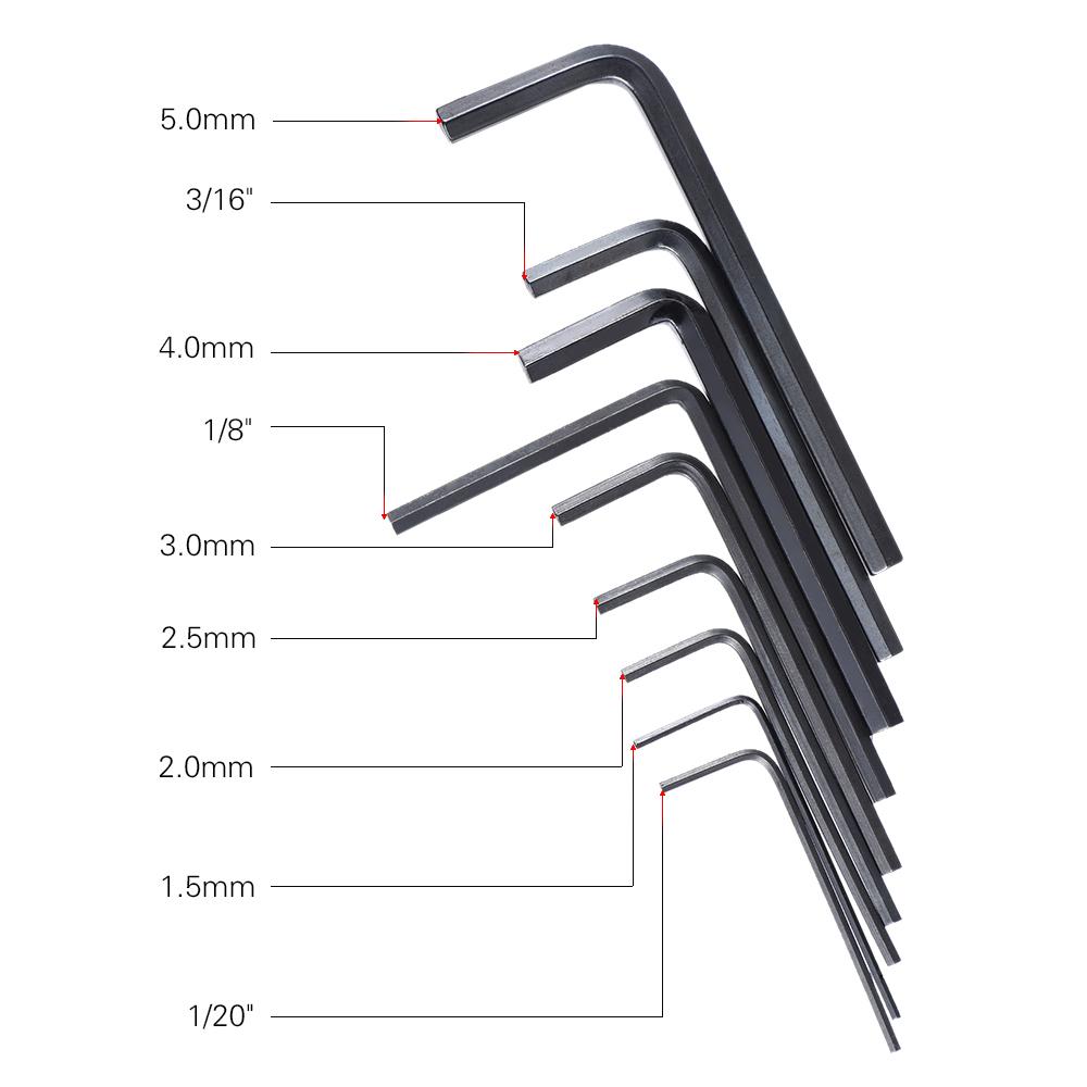 The guitar hexagonal wrench set with 9 kinds of gauge, widely used for adjusting the truss rod, guitar neck and hexagonal screws on bridge, it makes your guitar more comfortable to play.Features:Truss rod hexagonal wrench set for most kinds of acoustic guitar, electric guitar and bass.It helps you adjusting guitar parts efficiently.1.5mm, 2.0mm, 2.5mm, 3.0mm, 4.0mm, 5.0mm, can be used for locking hexagonal screws on the bridge, or for the guitar neck adjustment.1/20in for parts of Japan made Fender single roll bridge, 1/8in,3/16in for parts of America made Fender guitar neck adjustment.Made of carbon steel, durable and great wear-resistance.Specifications:Material: Carbon SteelGauge: 1.5mm, 2.0mm, 2.5mm, 3.0mm, 4.0mm, 5.0mm, 1/20in, 1/8in, 3/8inItem Weight: 54g / 1.9ozPackage Size: 10 * 4 * 1cm / 3.9 * 1.6 * 0.4inPackage Weight: 55g / 2.0ozPackage List:1 * Set of WrenchNote:The guitar not included.Please notice the dimension of the wrench shown in the picture.