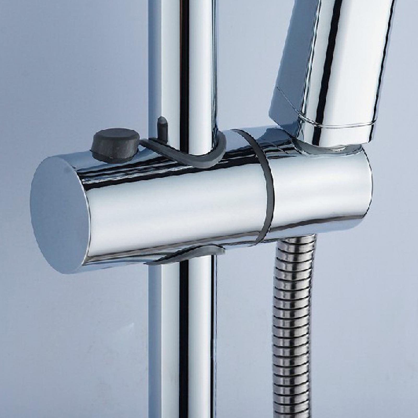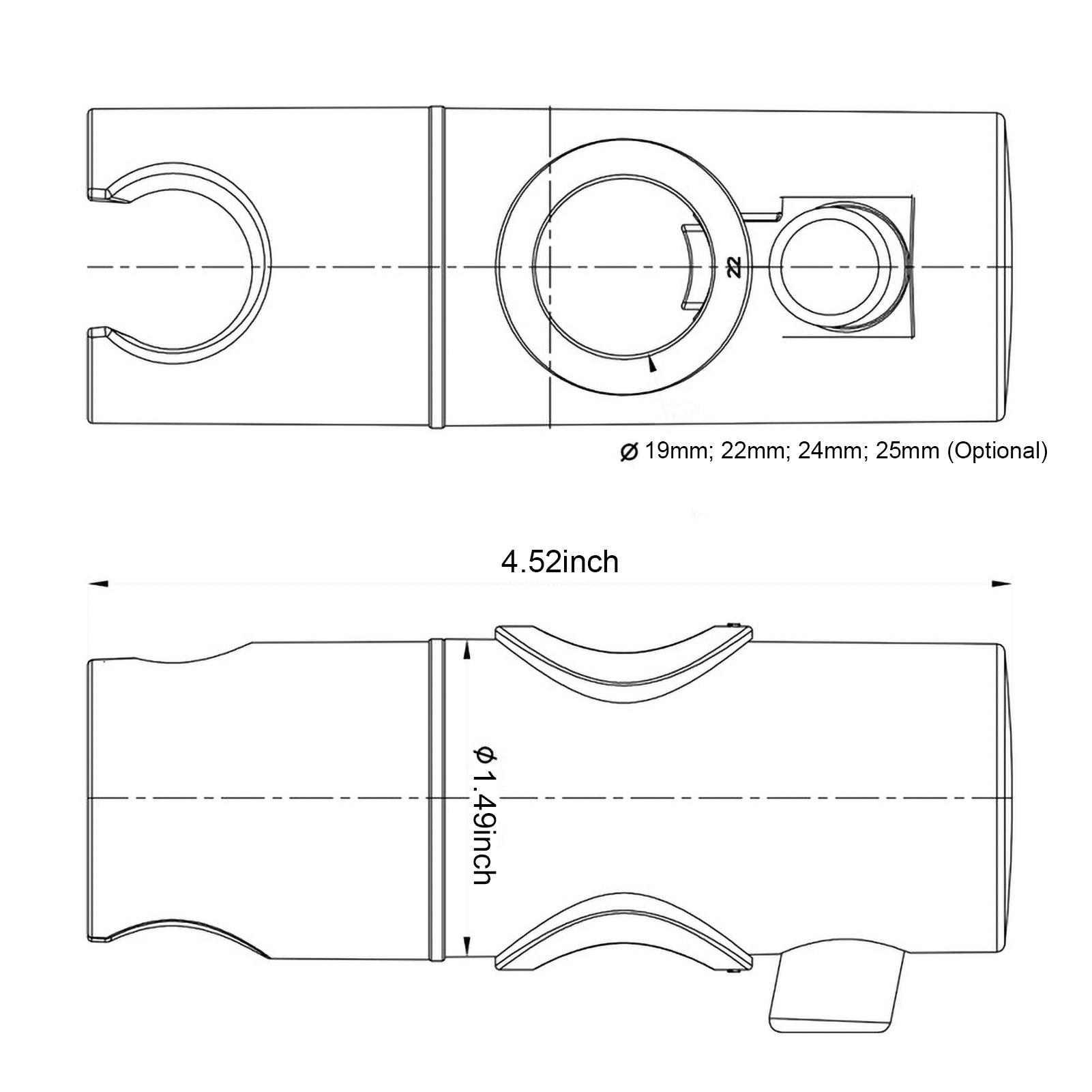 Adjustable angle and height, adjustable shower head bracket can specify the water jet position you want. Full body chrome finish with a shiny look and streamlined shape makes your bathroom more beautiful. This showerhead bracket is a new replacement part for a standard (19mm; 22mm; 24mm; 25mm optional) diameter round shower rod.Features:[Adjustable Height]You can adjust the height of the bracket freely by press the button, which makes your shower more convenient.[360 Degree Rotation]The holder end supports 360-degree rotation, so you can adjust the angle freely according to your need.[Durable]Built-in resin pad, to keep the showerhead in place and protect slide bar avoid scratch.[Polished Chrome]The shower holder with full chrome plated surface, stay polished for a long time of use.[Easy Installation]Adjustable handheld shower head holder bracket adopt high durability ABS plastic, easy installation by hands for tools free.Specifications:Applicable Pipe diameter: 19mm; 22mm; 24mm; 25mm (Optional)Color: SilverMaterial: ABSFinish: Polished Chrome ?Application: ShowerheadOccasion: BathroomItem Size: D3.8*L11.5cm / 1.49*4.52inchPackage Size: 11.5*4*4.5cm / 4.52*1.57*1.77inchPackage Weight: 50g / 0.11lbPackage List:1 * Shower Head Holder