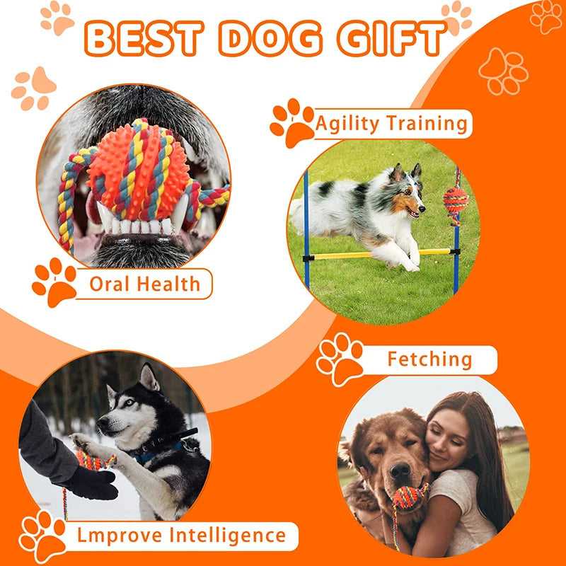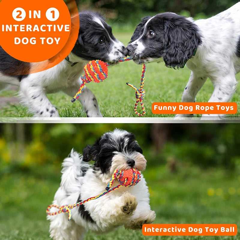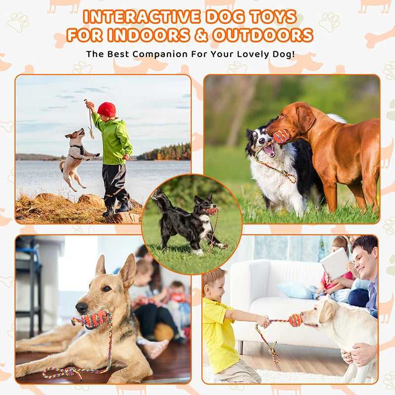 【Safe & Tough Dog Rope Toys】The tug toy for dogs are Non-toxic and tasteless natural material cotton rope toys made of tough handwoven cotton rope and TPR material is superior washable materials to outdoor dog toys which won't cause any harm to your beloved pet. Dog chew toys for large dogs make it great for dogs who like to chew and gnaw, satisfying the dog's natural urge to chew.