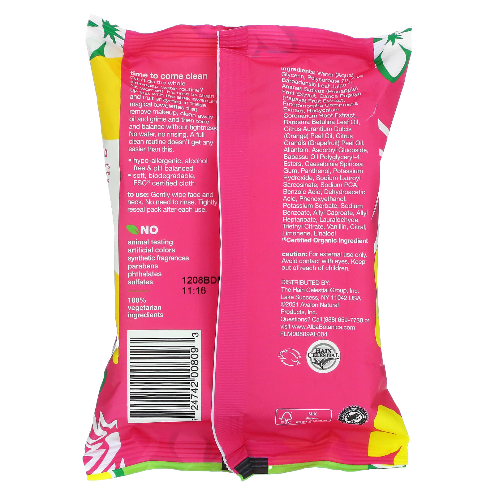 Water (aqua), glycerin, polysorbate 20, aloe barbadensis leaf juice (), ananas sativus (pineapple) fruit extract, carica papaya (papaya) fruit extract, enteromorpha compressa extract, hedychium coronarium root extract, barosma betulina leaf oil, citrus aurantium dulcis (orange) peel oil, citrus grandis (grapefruit) peel oil, allantoin, ascorbyl glucoside, babassu oil polyglyceryl-4 esters, caesalpinia spinosa gum, panthenol, potassium hydroxide, sodium lauroyl sarcosinate, sodium PCA, benzoic acid, dehydroacetic acid, phenoxyethanol, potassium sorbate, sodium benzoate, allyl caproate, allyl heptanoate, lauraldehyde, triethyl citrate, vanillin, citral, limonene, linalool.