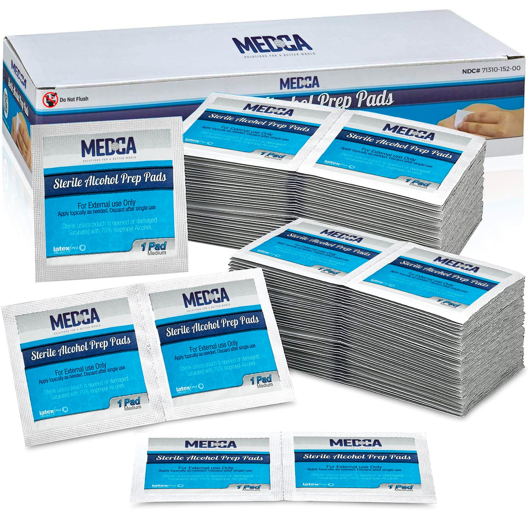 LET OUR MOIST ALCOHOL PREP PADS CARE FOR YOUR SKIN FROM MINOR CUTS AND SCRAPES Now you won't have to worry, with MEDca you can buy Premium alcohol wipes in bulk for a fraction of the price! Each box includes 1000 individually wrapped alcohol pads that are sealed in an airtight, easy-to-open poly-lined pouch which means that they prevent leakage so you'll never have to worry about them drying out!Our Bulk Box of 1000 Alcohol Prep Pads contains at least 70% Isopropyl alcohol in each pad which means that it is effective for cleaning wounds and small areas of skin for optimum action. You can even use these pads to cleanse wounds before covering them. With everything you Alcohol Prep Wipes its easy to see why customers love it with features like: 100 Boxes of 10 Count 1000 Total Wipes Individually Wrapped 70% Isopropyl Alcohol 2-Ply Non-Woven Cotton Latex Free