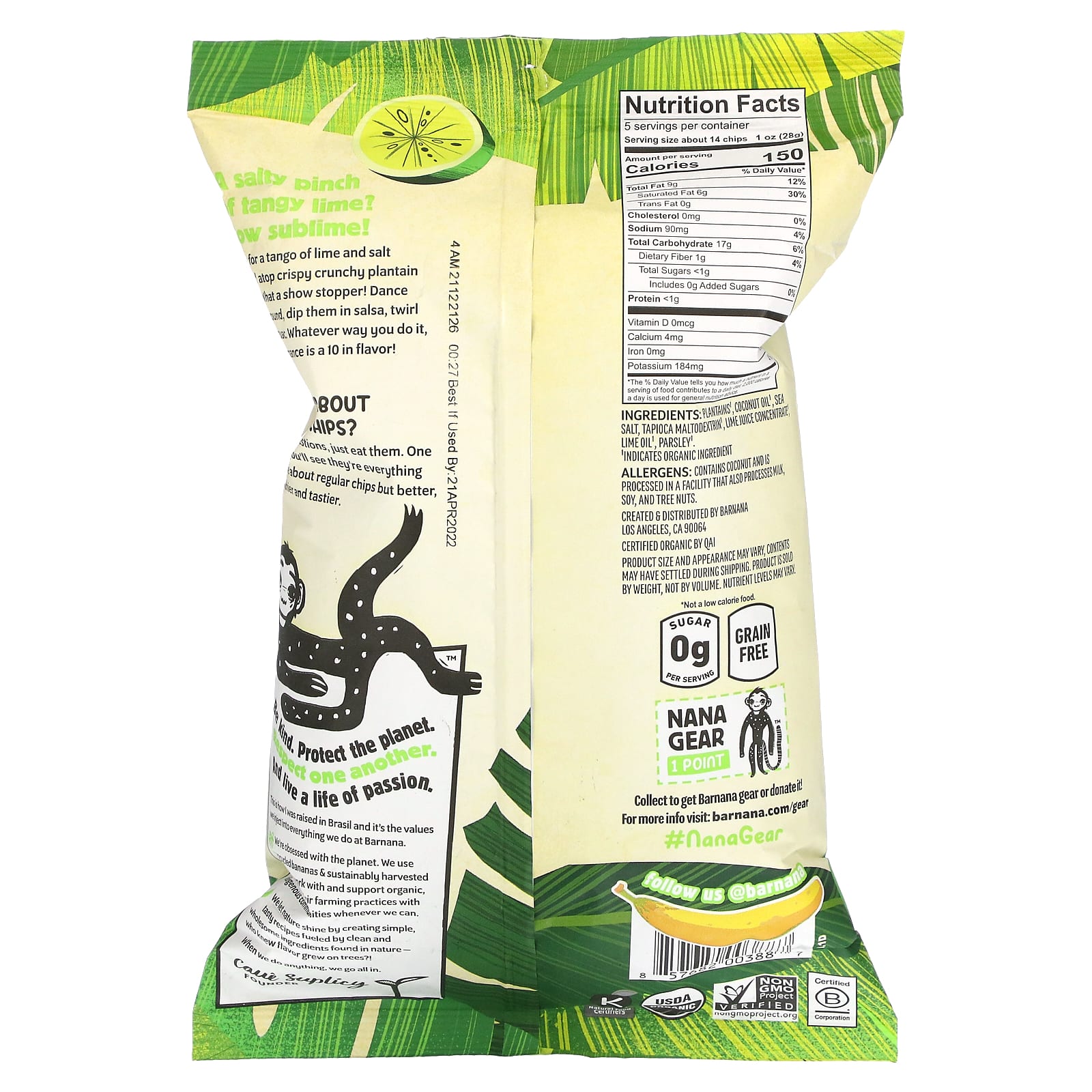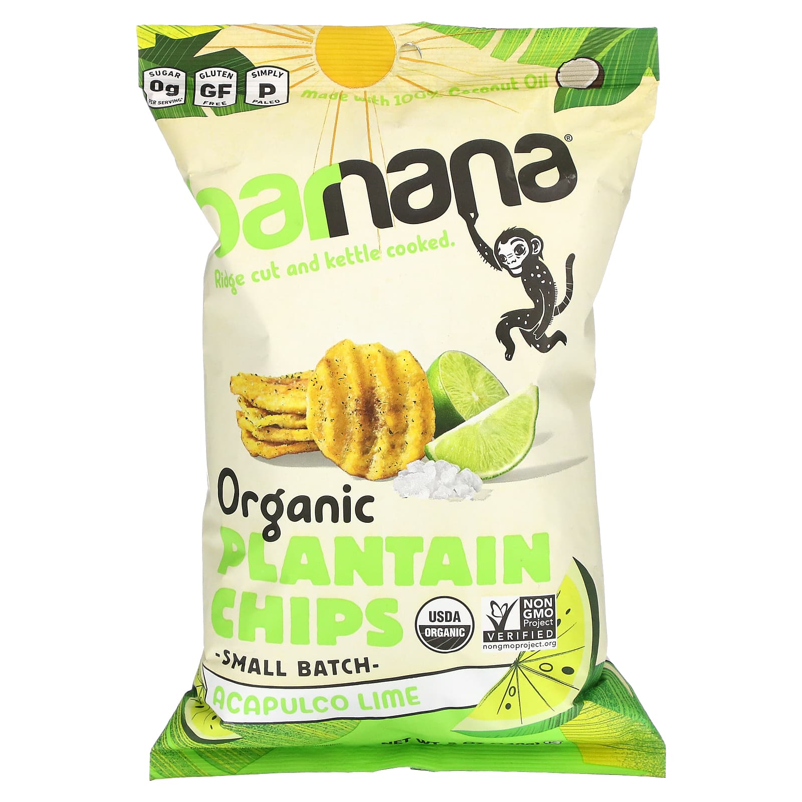Plantains1, coconut oil1, sea salt, tapioca maltodextrin1, lime juice concentrate1, lime oil1, parsley1.