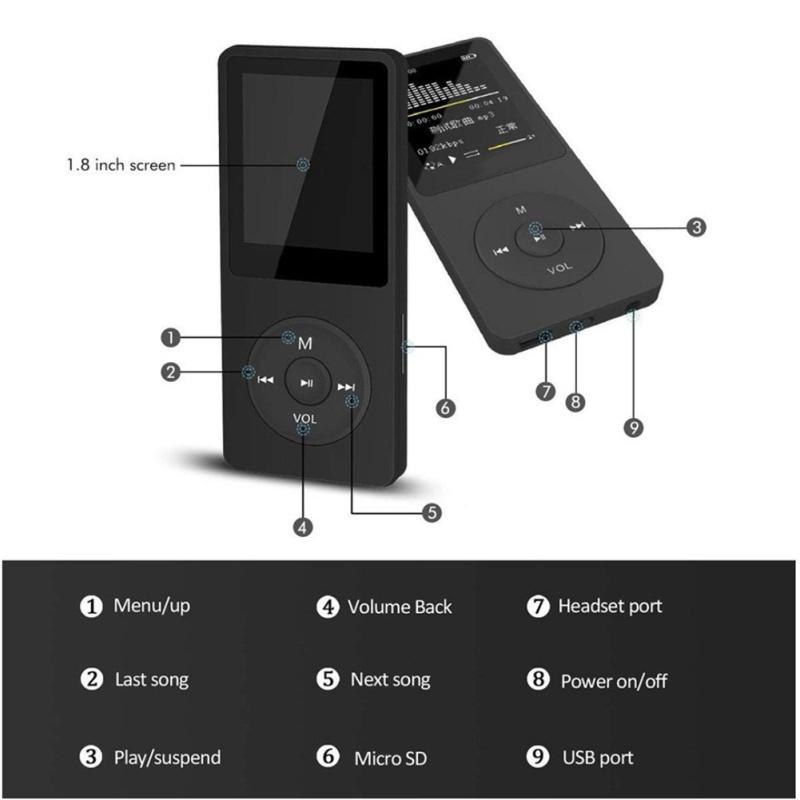 Feature:1. Built-in lithium battery, no need to buy batteries, lithium batteries can be used more than 1000 times.2. Equipped with power protection, more power saving, charging protection, automatic stop when full, more power saving.3. Normal mode/single cycle/directory play/directory cycle/all cycle/segment cycle/random play/introduction play supports multiple playback modes of MP4 players.Description:Product Name: Bluetooth-compatibleMP3 PlayerBluetooth-compatible: support for connecting Bluetooth-compatible headsets;Music format: MP3 format;FM: Full-band FM stereo radio;Picture: Electronic photo album/JJPEG picture browsing function, reading electronic novels;Microphone: built-in microphone, high-fidelity recording;Data transmission: support USB2.0 high-speed transmission, transmission speed up to 1000K Byte/S. Easy language learning, real digit repeater, repeatable, tracking, support displaying song titles in Simplified Chinese and English;Interface: USB 2.0;Screen size: 1.8 inches;Battery type: special lithium battery;Playing time: 8 hours;Menu language: Chinese and English;Horn: with horn;TF card: support memory card/sd card;Additional functions: e-book function/picture browsing/FM radio function/recording function;Packing list:1 x Bluetooth-compatible Mp3 Player1 x Headphone1 x Data Cable1 x Instruction Manual1 x Packing BoxNote:1. Due to manual measurement, please allow 1-3cm error. Make sure you dont mind before bidding.2. Due to the difference of different monitors, the picture may not reflect the actual color of the product.