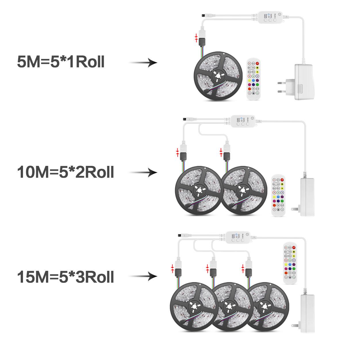 Easy installationFully equipped accessories,it comes with 1 reel of 5m/10m/15m LED light strip,an AC Power Adapter,a 40-KEY IR remote Control,