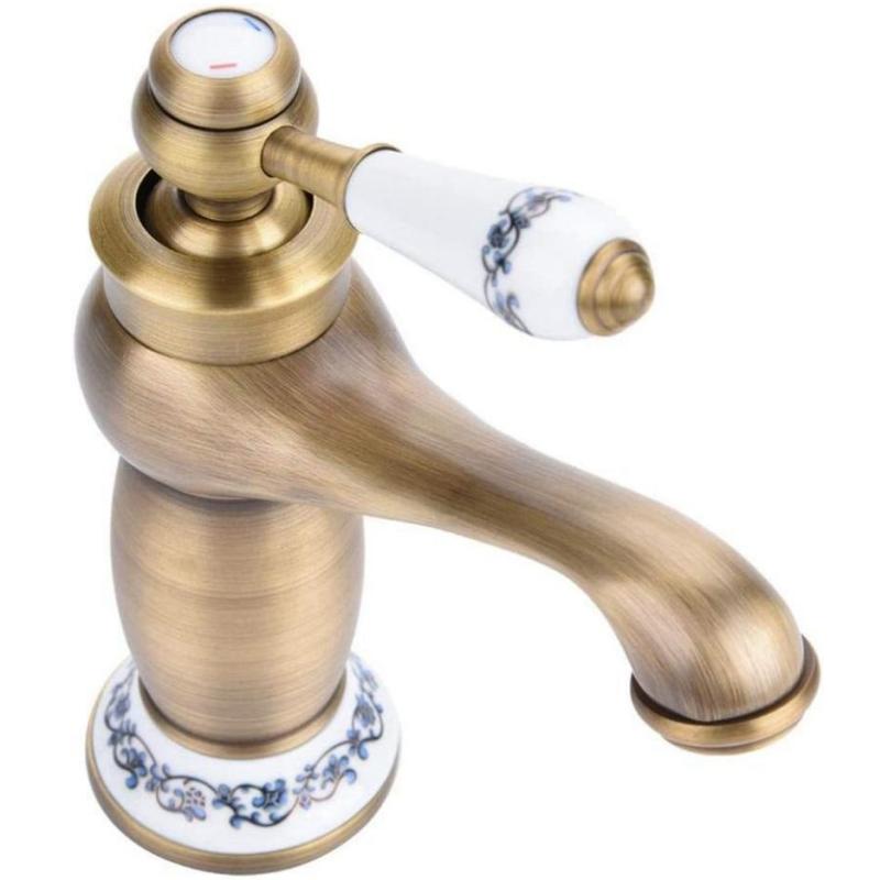 Vintage Antique Brass Faucet with Blue and White Porcelain, Long Neck Mixer Tap for Bathroom/Kitchen, Cold and Hot Water Basin Sink (Antique Finish)