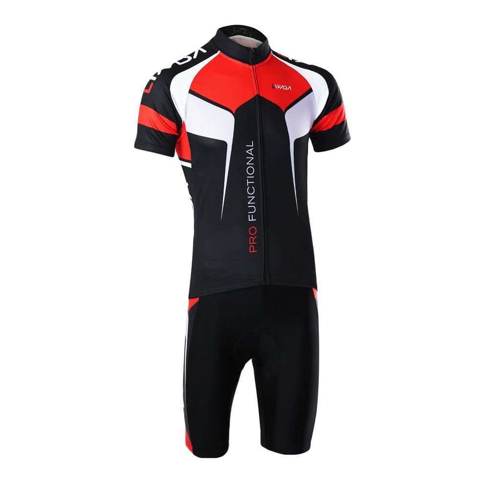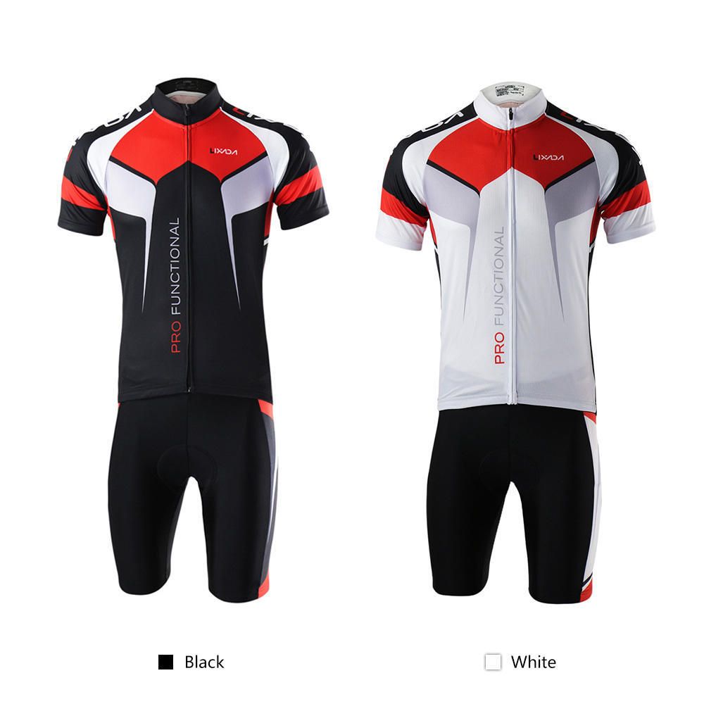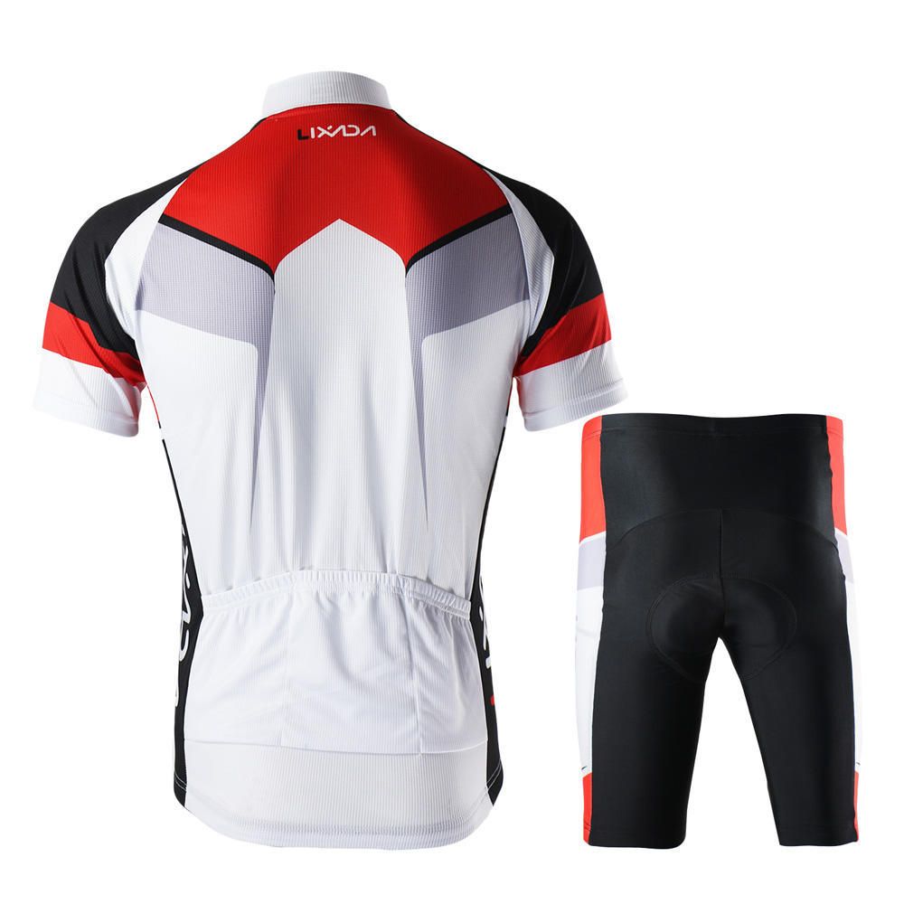 This stylish and comfortable cycling clothing set will give you a wonderful experience when riding.Features:Size is optional: S(EU)=165-170cm,60-70kg / M(EU)=170-175cm,65-75kg / L(EU)=175-180cm,70-80kg / XL(EU)=180-185cm,75-85kg / 2XL(EU)=185-190cm,80-90kg.Polyester fabric for maximum heat transfer, lets cool air in and wicks moisture away from skin.3 rear pockets for convenient carrying small items.Highly elastic shorts for free leg stretching.Thick sponge cushion inside the short for long time cycling.Silicone hem stop from slipping.Specifications:Brand: LIXADAGender: MenJersey material: 100% PolyesterShorts material: Polyester & SpandexColor: Black / White (optional)Size: S(EU)=165-170cm,60-70kg / M(EU)=170-175cm,65-75kg / L(EU)=175-180cm,70-80kg / XL(EU)=180-185cm,75-85kg / 2XL(EU)=185-190cm,80-90kg (optional)Weight: Approx. 320 - 430g / 11.3 - 15.2oz Size M: Chest: 94cm, Jersey Back Length:68cm,Waist:66-84cm,Pants Length:49cmSize L: Chest: 98cm, Jersey Back Length:70cm,Waist:68-90cm,Pants Length:51cmSize XL: Chest: 104cm, Jersey Back Length:72cm,Waist:70-96cm,Pants Length:53cmSize 2XL: Chest: 108cm, Jersey Back Length:74cm,Waist:72-102cm,Pants Length:55cmSize 3XL: Chest: 114cm, Jersey Back Length:76cm,Waist:74-108cm,Pants Length:57cmPackage List:1 * Cycling Jersey1 * Cycling ShortsNote: The clothes is delivered in CN size, which is smaller than EU and US size. M(CN)=S(EU)=S(US). Please refer to our size chart and choose the correct size.