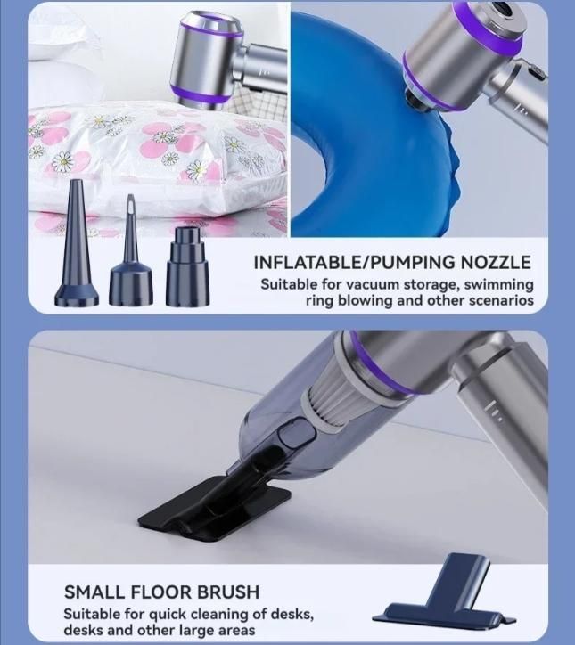 Features:1. This vacuum cleaner uses a smart chip with a child lock function, the switch will not open when tapped to preventchildren from accidentally touching it.2. Normal mode start method: long press the switch for 3 seconds and then start, at this time release the switch is normal mode, less noise, suitable for cleaning small area of dust.3. Super mode start method: long press the switch for 3 seconds, then release the switch and press the switch again to enter the super mode. Clearly can feel the increase in suction, suitable for deep cleaning crevices of dust.Introduction[Product Name]: Handheld Vehicle Vacuum Cleaner[Product functions]:mainly cleaning cars, vacuuming, blowing dust and so onVersion introduction[Product material]: ABS[Color]: Grey, Purple[Motor]: New upgrated Brushless motor[Vacuum degree]: 290000PA[Rated speed]: 25500rpm[Capacity of lithium battery]: 3 * 2000mAh[Charging mode]: Type-C charging line[Noise]: 52dB[Operating temperature]: - 20 ~+50 [weight]:480g[Package list]:vacuum cleaner X1Accessories X 8Charging line X1User manualX1 NOTE Your 5 star review is the best support to our store!