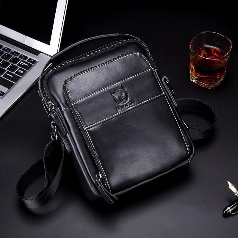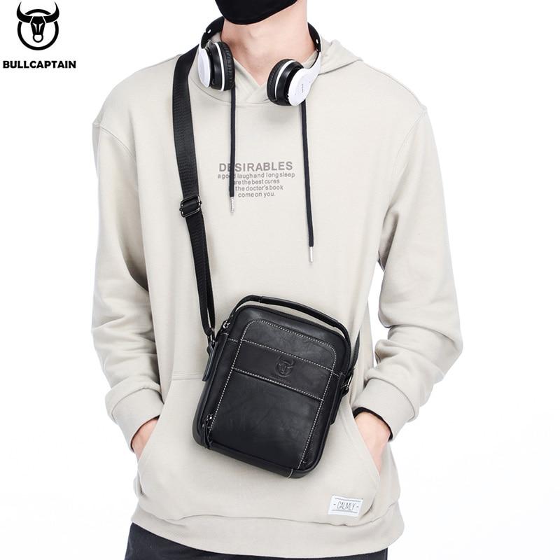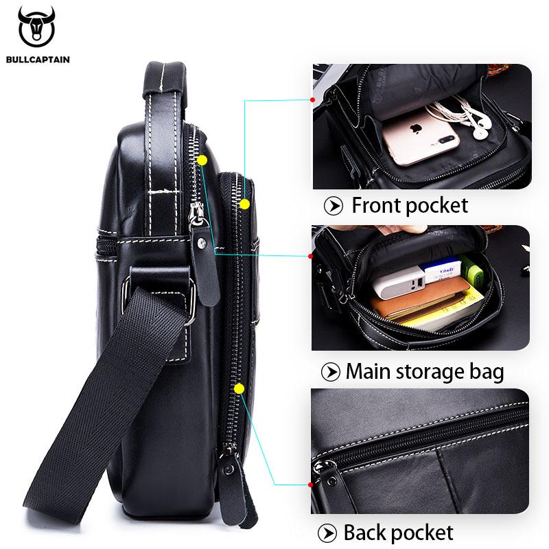 Label: YesBrand Name:BULLCAPTAINMain Material:GENUINE LEATHERClosure Type:zipperLining Material:PolyesterGender:MENSize:19cm x 9cm x 23cmPackage incldue:1 x BULLCAPTAIN bag