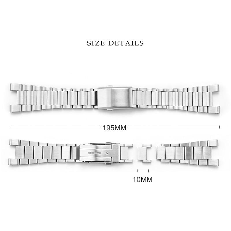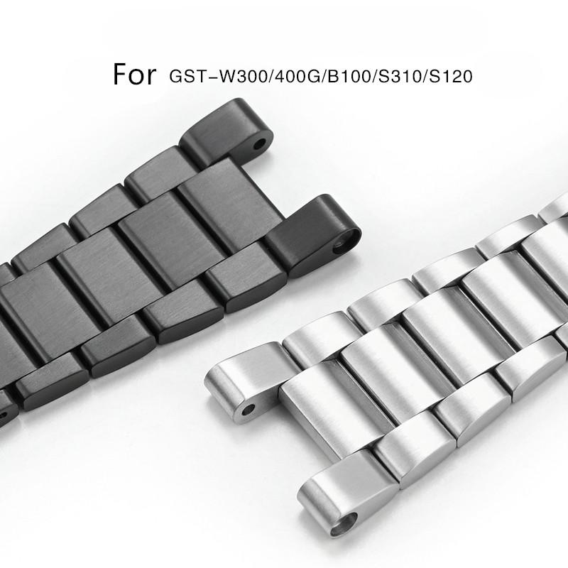 Product Band Material: Solid stainless steel strapstrap Model: Men s Premium Waterproof Solid Stainless Steel Strap 26MM for Casio GST-B100/S130/W300GL/400G/W330 GST-W120L/ s120/W130L/S100/S110Buckle Material: Metal BuckleBelt Interface: Special Interfacestrap color: Silver BlackFeatures of the strap: soft rubber, comfortable to wear, waterproof and sweat-resistant, beautiful appearance, stainless steel bucklePacking: 1 belt, 1 tool, 2 screwdrivers