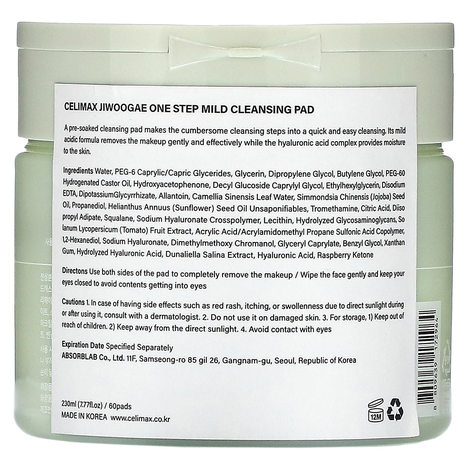 A pre-soaked cleansing pad makes the cumbersome cleansing steps into a quick and easy cleansing. Its mild acidic formula removes the makeup gently and effectively while the hyaluronic acid complex provides moisture to the skin.