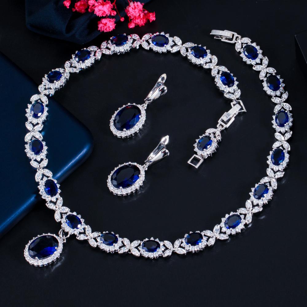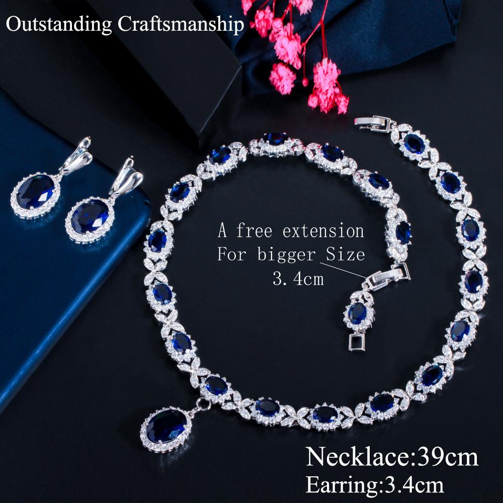 Gender: WomenType: Jewelry SetMaterial: Copper,AAA Cubic ZirconiaColor: SapphireThickness: StandardShape: As The PictureSize: One SizeEarrings Size: About 3.4 cm Length ( Please kindly notice the size )Necklace Size: About 39 cm + 3.4 cm Extended Clasp ( Please kindly notice the size )Style: Daily,Party,Wedding,Engagement,Anniversary,Gift,Evening Party,Night ClubFeatures: Trendy,Romantic,LuxuryPackage Includes: 1 pair of Earrings,1 Necklace, 1 Piece Gift Bag