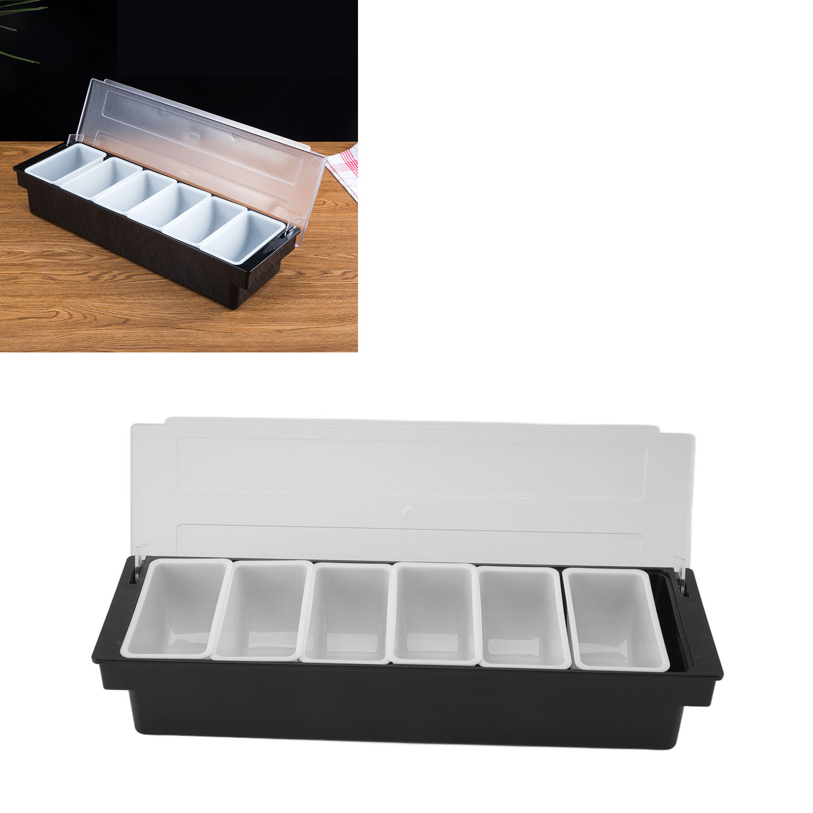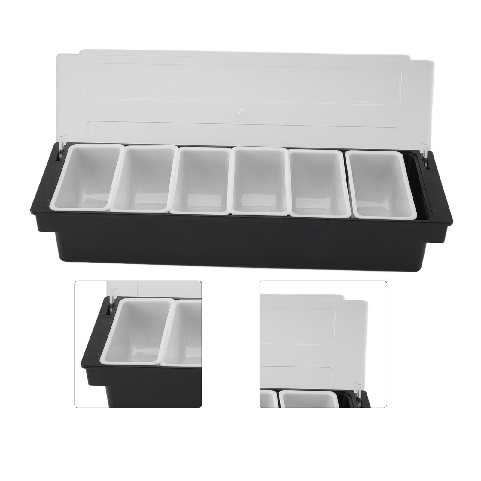 1Multi Function: This condiment caddy is perfect for fruits, vegetables, sauces, gravies, dips, toppings and condiments, coffee beans, cereals, etc. 2Detachable Design: This bar garnish caddy features detachable design, providing great convenience for cleaning. 3Transparent Lid: This condiment organizer adopts transparent lid that allows you to know clearly about the residual. 4Durable Material: This bar fruit caddy is made of strong and durable plastic material, which ensures long service life. 5Perfect Gift: This condiment caddy with transparent lid and detachable design is perfect gift giving choice.