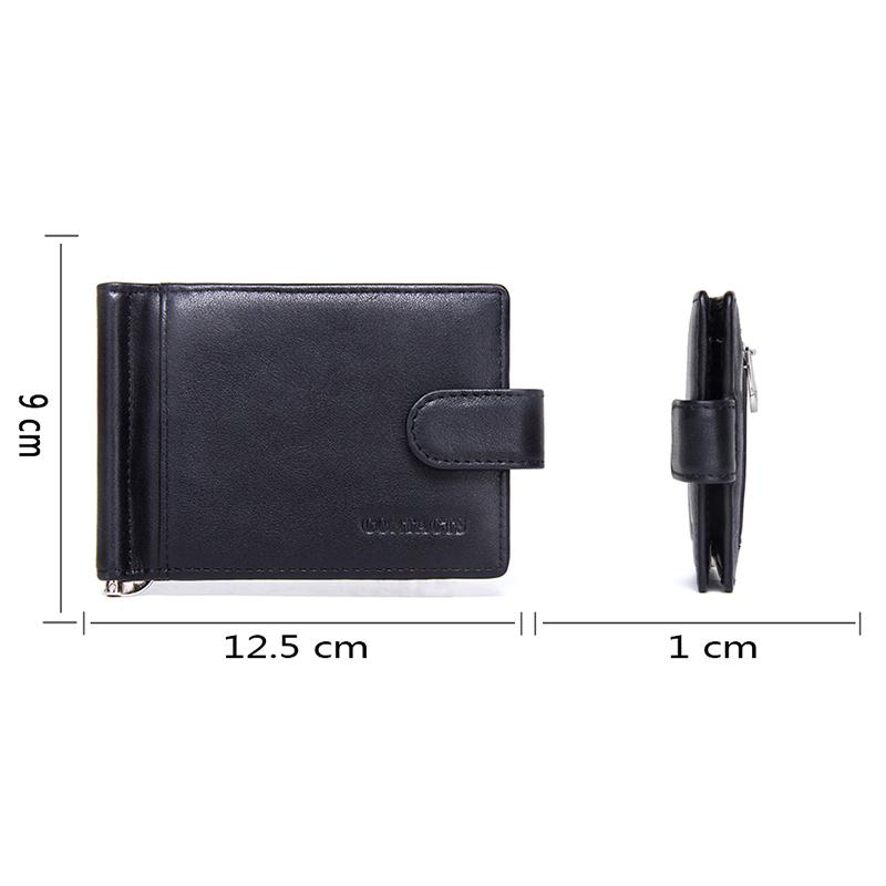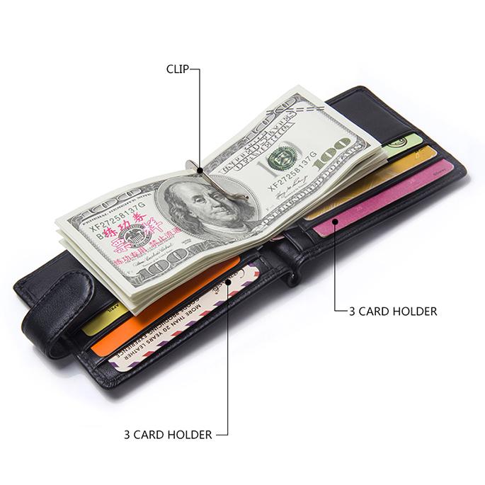 Item Type:Money Clips Main Material:Genuine Leather Genuine Leather Type:Cow Leather Pattern Type:Solid Gender:Men Item Height:9 cm Item Length:12.5 cm Item Width:1 cm Label: Yes