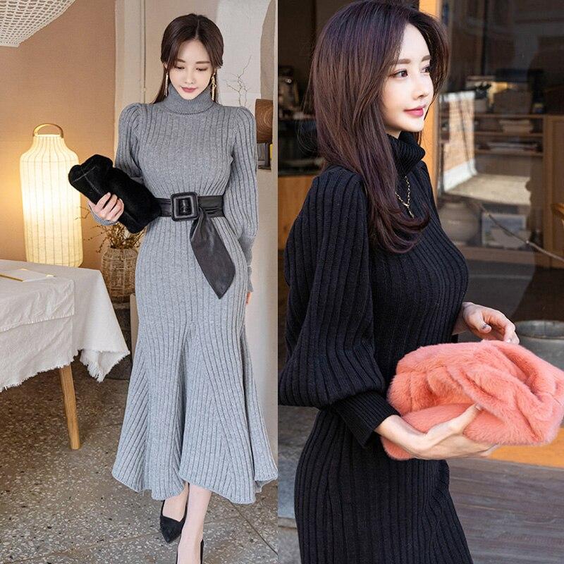 Material: Polyester 100%Washing: do not bleachLabel: YesSilhouette:A-lineSeason:WinterNeckline:TurtleneckSleeve Style:Lantern SleeveDecoration:SashesStyle:CasualDresses Length:Ankle-LengthMaterial:Polyester,Knitting CottonClosure Type:PulloverSleeve Length(cm):FullWaistline:empirePattern Type:SolidSize: One Size, Length: 130cm, Bust: 84-98cm, Waist: 70-80cm, Hip: 100-108cm, Shoulder: 39cm