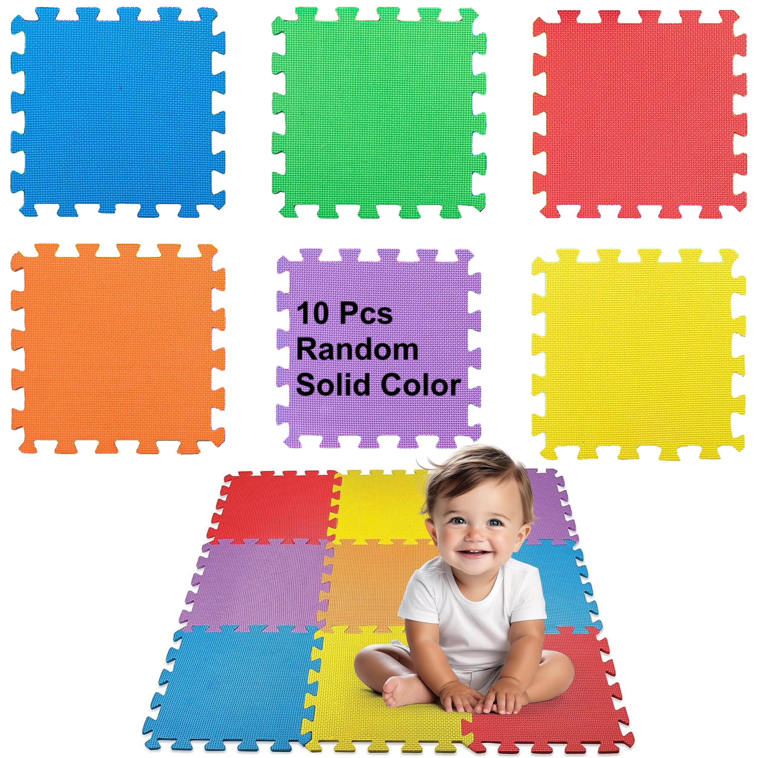 Creative Time Floor Mat 10-tile Exercise Mat Solid Foam Eva Playmat Kids Safety - 10-pcs Of (1) Random Solid Color, Receive Either Red, Blue, Green, Yellow, Purple Or Orange